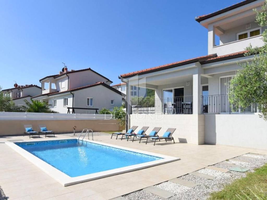 Kuća se nalazi u blizini Grada Labina, svega 10 ak minuta vožnje automobilom. Ipak, bitnije je da se kuća nalazi 500 metara od mora. Smjestila se na iznimno tihom mjestu, u potpunosti ograđena te vam pruža mir i intimu za super odmor ili obiteljski život. Kuća ima 180 kvadratnih metara i leži na 650 metara okućnice gdje se smjestio i bazen od 24 kvadrata. Bazen nije grijan ali je izvedena instalacija pa se lako može dodati i grijanje.