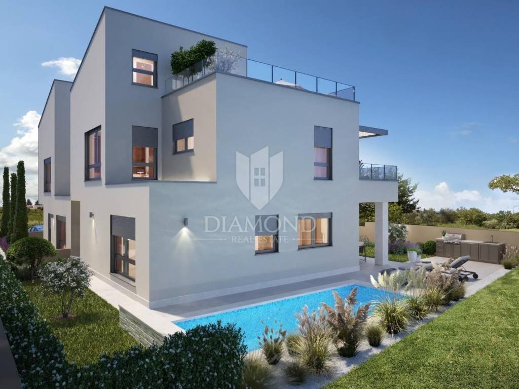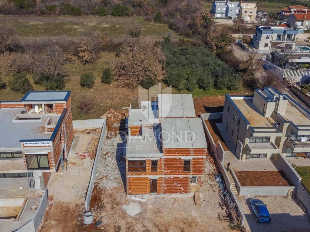 Kuća se gradi na zemljištu od 300m2, ukupne površine 200m2. U prizemlju kuće nalazi se kuhinja i dnevni boravak rađeni po principu open space, 2 spavaće sobe i wc. Na katu kuće se nalaze tri spavaće sobe od kojih svaka ima pogled na more i dvije kupaonice. Što kuću čini posebnom je krovna terasa sa jacuzziem i predivnim pogledom na more. U dvorištu kuće nalazi se vrt te dva parkirna mjesta. Predviđeno grijanje je etažno podno na dizalicu toplinu a hlađenje na klima uređaje. Kuća se gradi od visoko kvalitetnih materijala te se nudi mogućnost odabira keramike, parketa i sanitarija.