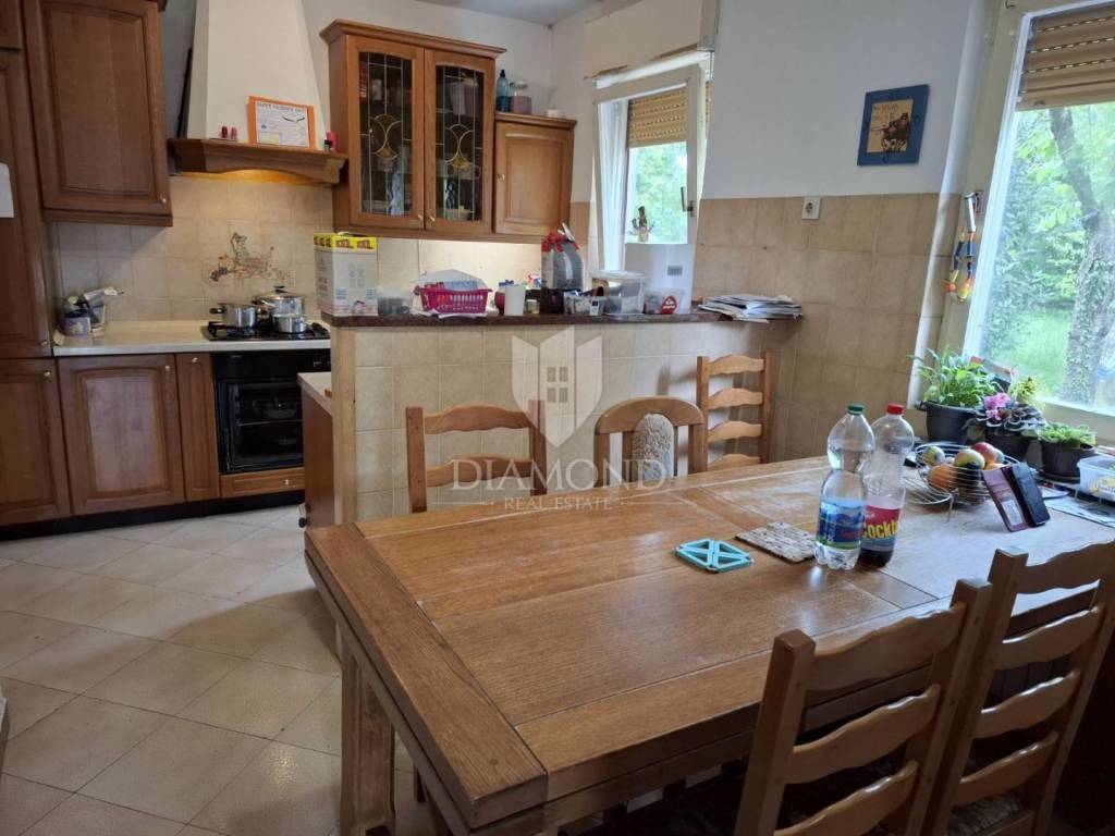 Prodajemo kuću sa jako velikom okućnicom od čak 8300 kvadratnih metara. Kuća se smjestila na svega 2 kilometra od Labina i nudi jako velike mogućnosti. i za uživanje i razvoj. Kuća se sastoji od dva stana, svaki površine 110 m², s vlastitim terasama i podrumom od 50 m² u kojem je smještena kotlovnica za centralno grijanje na lož ulje.