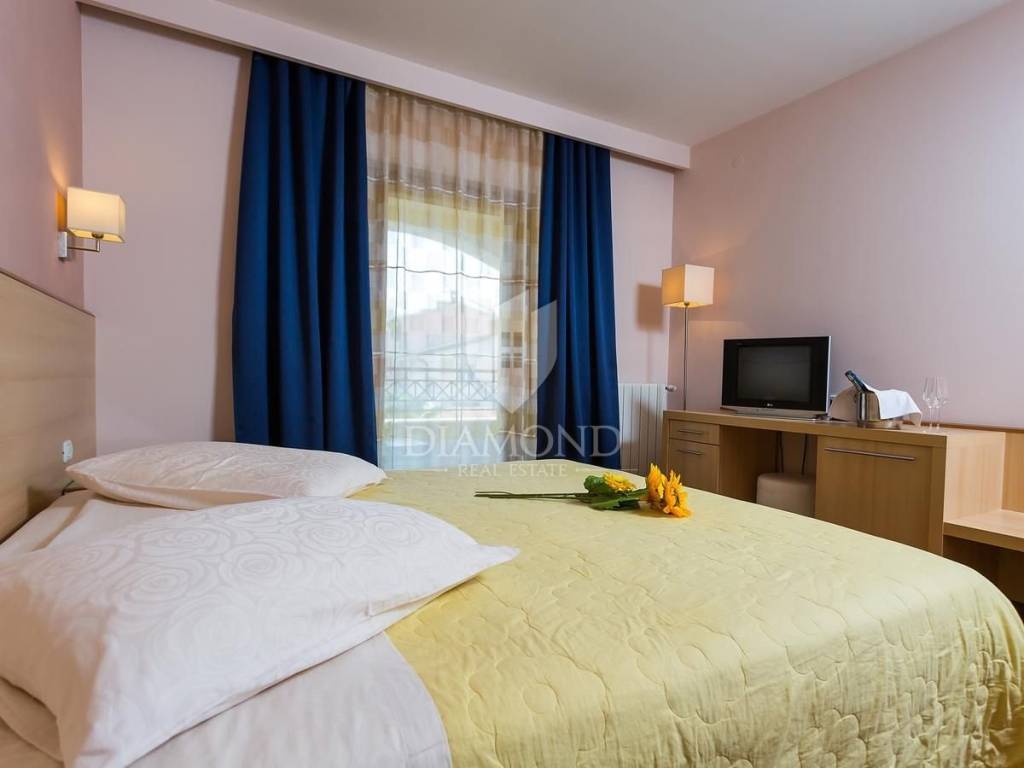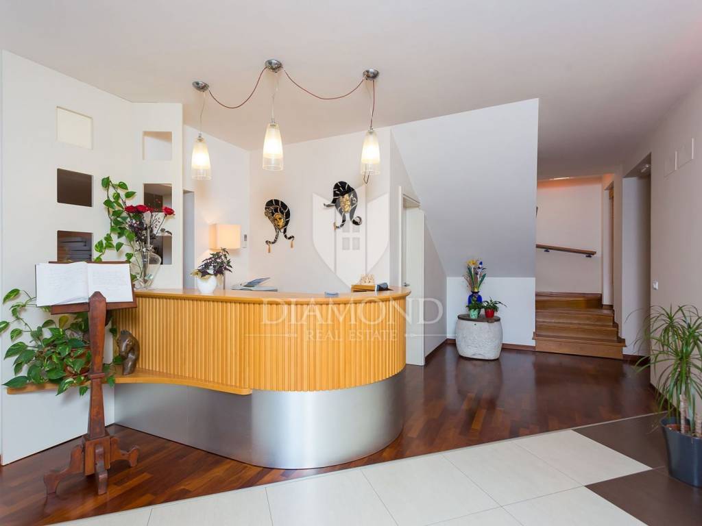 Šarmantna vila u blizini Novigrada. Villa se nalazi u idiličnom okruženju i prirodi. Smještena je svega 5 kilometara od centr Novigrada. U prizemlju se nalazi prostrana središnja soba, gdje ćete zasigurno provoditi mnogo zajedničkog vremena. Ovdje se nalazi veliki prostor s dnevnim boravkom sa izlazom na vanjsku terasu i primamljivi bazen u lijepom vrtu koji nudi brojne dodatne sadržaje i sportske aktivnosti koje će najviše razveseliti djecu, blagovaonicom, velikim kupatilom i potpuno opremljenom kuhinjom. Vila ima ukupno 9. Spavaćih soba, od kojih svaka ima privatnu kupaonicu, balkon i pogled na prekrasno dvorište i bazen. 7x dvokrevetnih soba od 25 m2, 1x trokrevetna soba od 35 m2 i 1x suite soba od 50 m2.