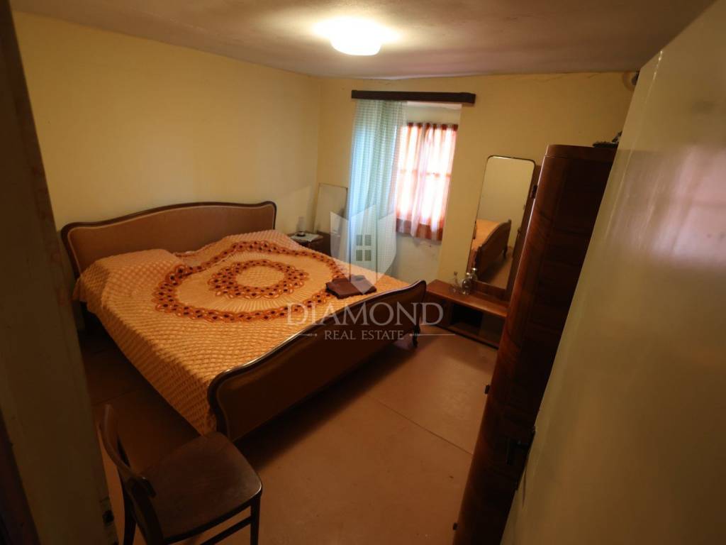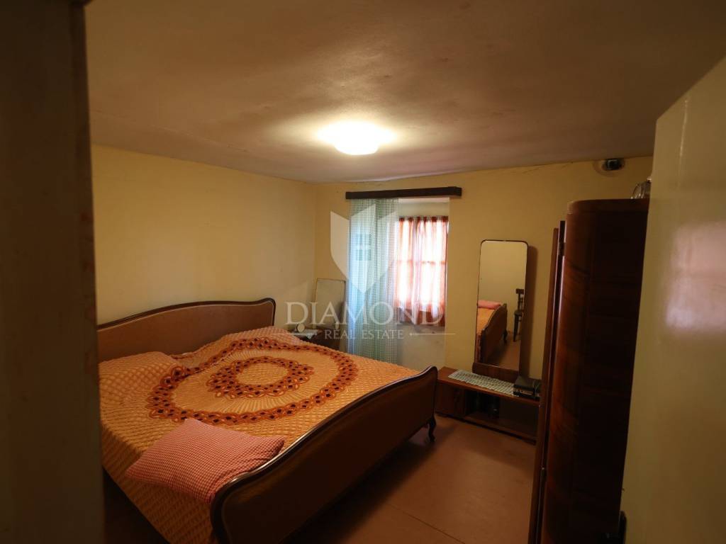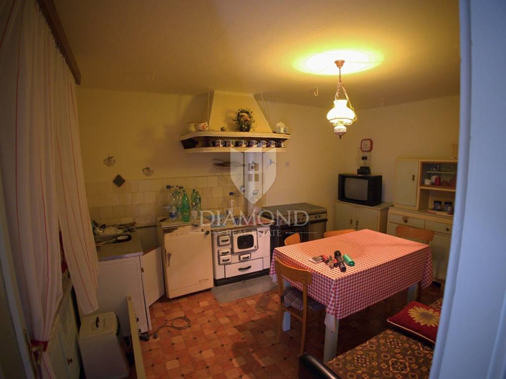 Kuća je zadnja u nizu i prostire se na 115 kvadrata. U prizemlju se nalazi kuhinja dok su na katu 3 sobe sa kupaonicom. Kuća raspolaže i sa spremištem, konobom i pomoćnim objektom koji se može prenamijeniti u nešto po vlastitoj želji. Kuća je autohtona istarska kamena gradnja te se prije 10 godina obnavljao krov. U kući je struja te priključak vode. Ispred kuće je veliko dvorište koje se može koristiti kao parking.