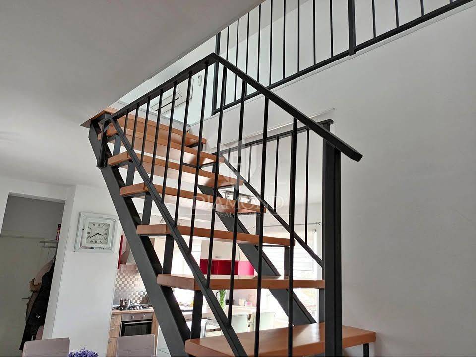 Sam stan se smjestio na prvom katu, ima 80 kvadrata te se proteže na 2 etaže. Prva etaža stana se sastoji od ulaznog prostora, kupaonice, spremišta, dnevnog boravka, kuhinje i blagovaonice te spavaće sobe, ukupne površine 57,10 m2. Na katu do kojeg vode lijepe unutarnje stepenice su dvije spavaće sobe i kupaonica površine 24,90 m2 - lođa površine 3,45 m2 koja je idealna za ispijanje kave i uživanje u pogledu . Pošto mjesta nikad dosta ovom stanu pripada i spremište površine 2,85 m2 u podrumu, te odlično parkirno mjesto površine 2,75 m2. Svaka etaža raspolaže sa klimama za grijanje i hlađenje.