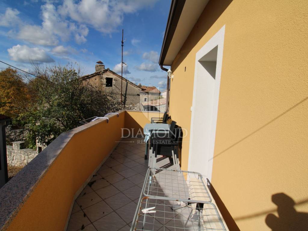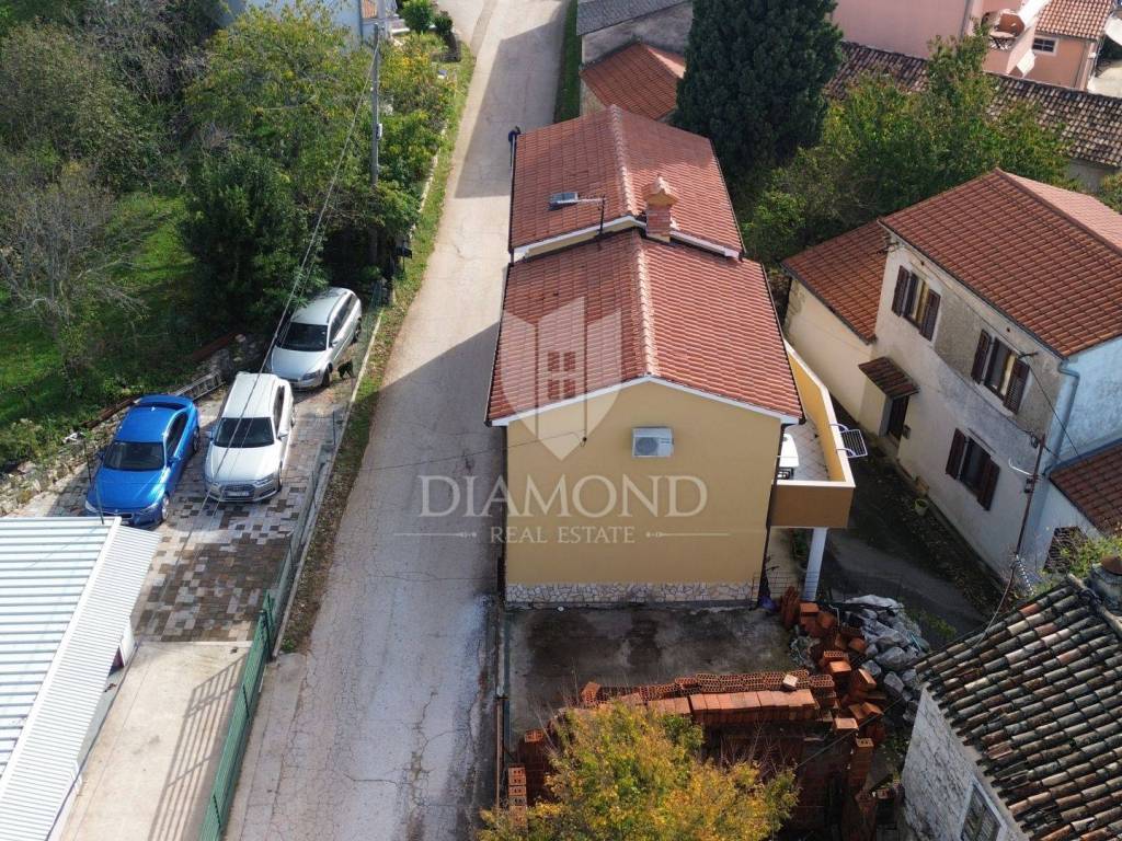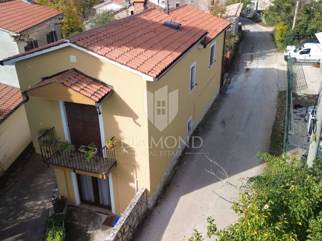 Kuća se smjestila u manjem mjestu pored Labina svega 4 kilometra od samog centra grada. Odlična obiteljska se prostire na 160 kvadratnih metara. Kuća raspolaže sa jednom spavaćom sobom u prizemlju, kupaonicom, blagovaonicom i kompletno funkcionalnom i novom kuhinjom te na katu sa još dvije spavaće sobe i dnevnim boravkom. Iz dnevnog boravka je izlaz na balkon u kojem se može u miru uživati u kavi ili objedima kao i u samom pogledu na zelenilo. Kuća ima novi krov i fasadu te izolaciju koja pruža toplinu u zimskim mjesecima i hladnoću u ljetnim mjesecima. Grijanje je osigurano preko peći na pelet i 2 klime koje ujedno i hlade prostor. Odličan koncept je učinjen sa dnevnim boravkom koji je na katu tako da se u miru može uživati odvojeno dok se recimo u kuhinji priprema jelo.