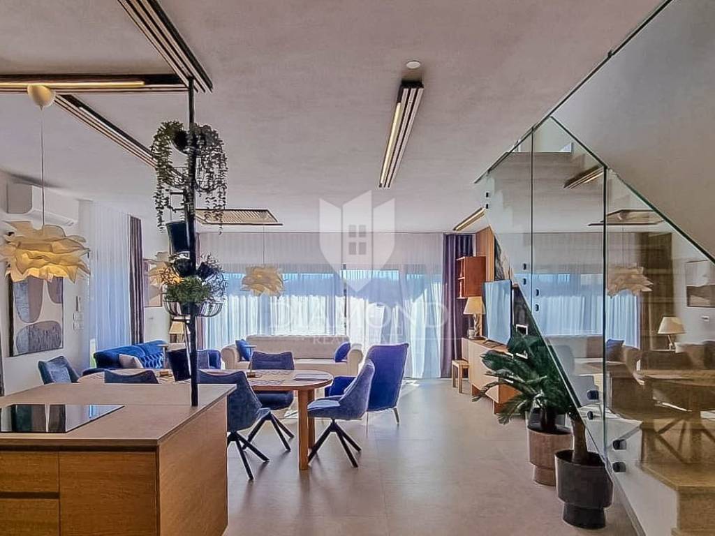 Kuća ukupne veličine 173.28 m2 sa terasama, sastoji se od dnevnog boravka sa kuhinjom, 1 toalet, 3 spavaće sobe i 2 kupaonice, na krovu se nalazi terasa sa pogledom na more. U prizemlju se nalazi open space dnevni boravak sa kuhinjom i toaletom, iz dnevnog boravka izlazimo na natkrivenu terasu na kojoj će biti pripremljena instalacija za ljetnu kuhinju, sa terase pristupamo okućnici koja je približne veličine 200 m2. Unutarnjim stepenicama dolazimo na prvi kat na kojem se nalaze 3 spavaće sobe od kojih jedna ima svoju kupaonice ,a druge dvije spavaće sobe imaju jednu zajedničku kupaonicu. Na krovu se nalazi terasa sa pripremljenim instalacijama za struju i vodu. Prostor na krovu može poslužiti za razne namjene , a sa krovne terase pruža se pogled na more. Nekretnini pripada 2 parking mjesta koje se nalaze na okućnici.