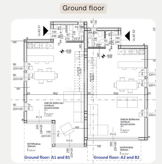 Tražite kuću blizu mora? Onda je ova kuća prava prilika za Vas. Kuće su u fazi završnih radova i bit će uskoro spremne za nove vlasnike.
