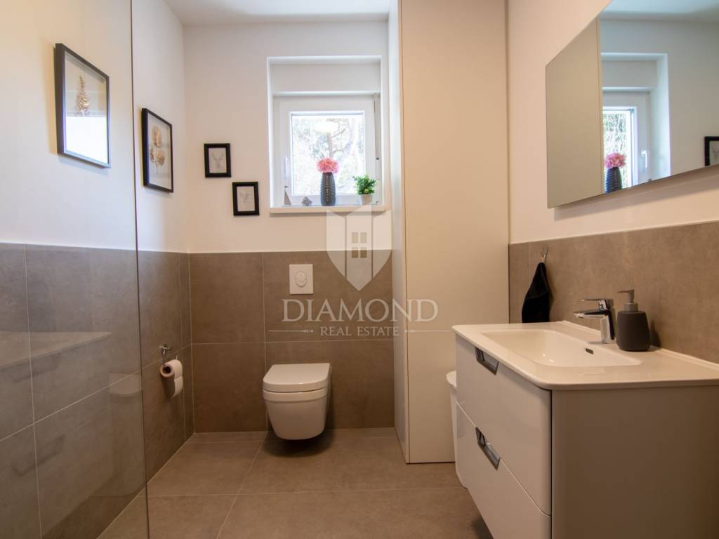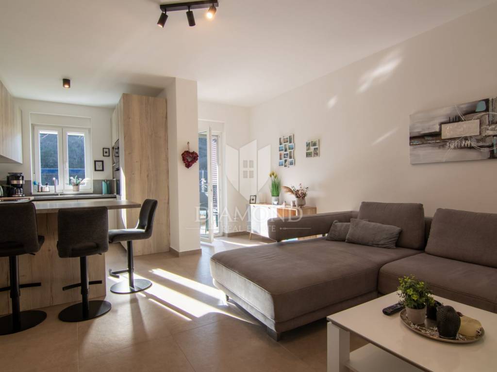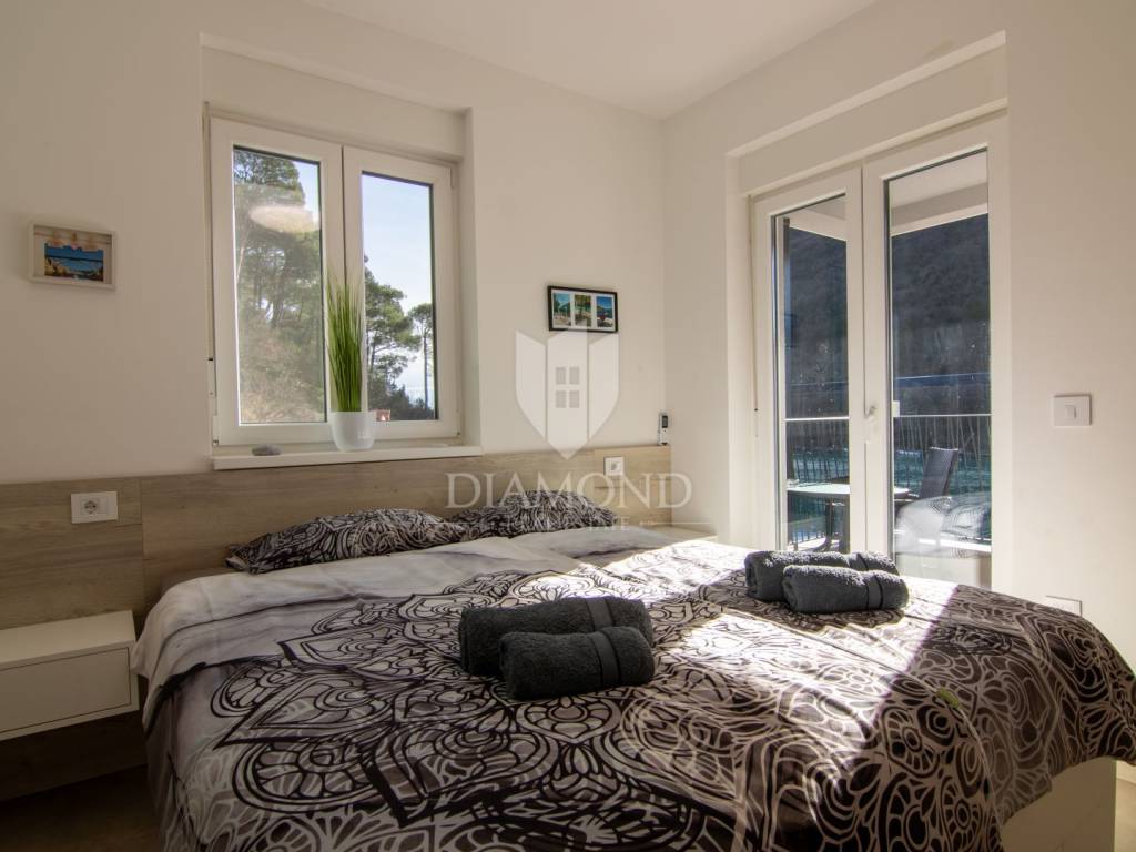 Labin, okolica, prodajemo ekskluzivan, potpuno namješten stan u modernoj novogradnji smještenoj u prvom redu do mora, na iznimno atraktivnoj lokaciji u neposrednoj blizini plaža.