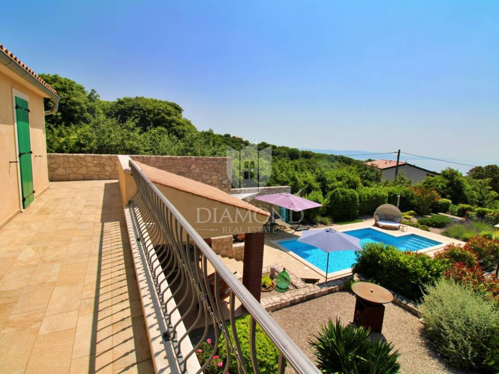 Na katu se nalaze tri svijetle i prozračne spavaće sobe, svaka s izlazom na balkon i prekrasnim pogledom na more. Glavna spavaća soba ima vlastitu prostranu kupaonicu, dok dodatna gostinjska kupaonica te praktične vanjske stepenice koje vode izravno do bazena zaokružuju funkcionalnost i komfor gornje etaže.