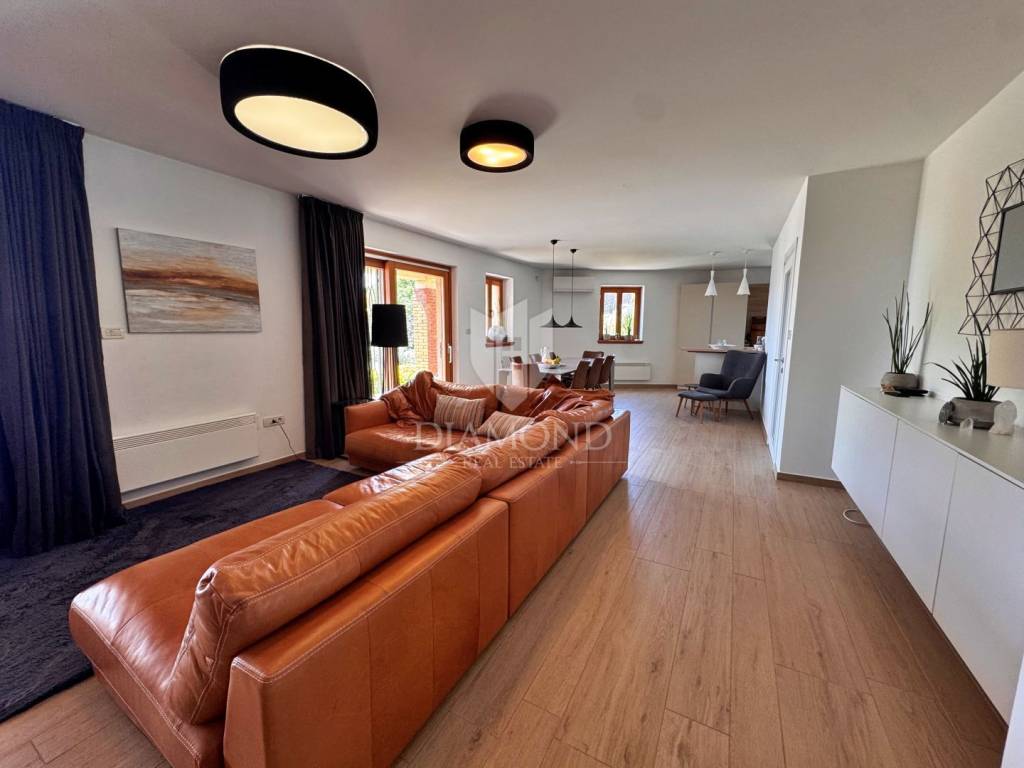 U malom, mirnom naselju, 5 min udaljenom od plaže, a smještena na blagoj uzvisini s otvorenim pogledom na Jadransko more, prodaje se ova istarska, mediteranska villa.