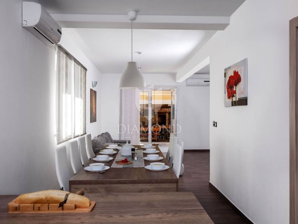Kuća se sastoji od prizemlja i kata te obuhvaća četiri spavaće sobe, dvije moderno uređene kupaonice, opremljenu kuhinju, blagovaonicu i dnevni boravak s izlazom na natkrivenu terasu.