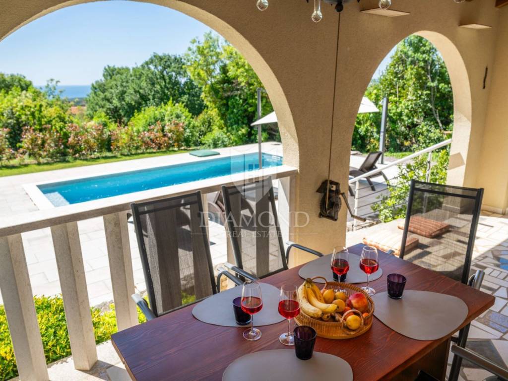 Kuća s bazenom i pogledom na more, okolica Labina, 5 minuta od mora