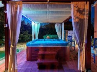 Villa posjeduje 4 spavaće sobe (2 u prizemlju i 2 na katu) dnevni boravak , 3 kupaonice(2 u prizemlju i 1 na katu) , te kuhinju kao i natkrivenu terasu sa roštiljem na drva. Kompletan interijer i exterijer ville su umjetnički dekorirani i dizajnirani od strane raznih umjetnika i dizajnera, što pruža poseban ugođaj u objektu. Villu okružuje 700 m2 uređenog okoliša , na kojem se nalaze bazen, zasebno natkriven i osvijetljen jacuzzi te dodatni sadržaji za odmor i rekreaciju, poput minigolf, foot-pool pa je sve namješteno za cijelodnevno uživanje u ambijentu.