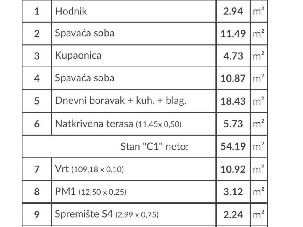 Pula, jedan od najpoželjnijih gradova u Istri, nudi spoj mediteranskog načina života, razvijene infrastrukture i blizine mora.Valdebek je mirno i traženo stambeno naselje koje se kontinuirano razvija te je sve češći izbor za obiteljski život i dugoročnu investiciju.Prodaje se stan u kvalitetnoj novogradnji, zgrada C, stan C1, smješten u prizemlju, s pripadajućim vrtom. Objekt je u potpunosti izgrađen, a izdavanje uporabne dozvole očekuje se uskoro.Stan je opremljen suvremenim i energetski učinkovitim sustavima grijanja i hlađenja:* Visokokvalitetni Daikin sustav grijanja i hlađenja, s unutarnjim jedinicama niskog profila postavljenima uz pod (radijatorski tip), za ugodnu i ravnomjernu temperaturu tijekom cijele godine* Podno grijanje u dnevnom boravku, hodniku i kupaoniciRASPORED PROSTORIJAHodnik: 2,94 m²Spavaća soba: 11,49 m²Kupaonica: 4,73 m²Spavaća soba: 10,87 m²Dnevni boravak s kuhinjom i blagovaonicom: 18,43 m²Natkrivena terasa: 11,45 m² (obračunato 5,73 m²)Neto površina stana: 54,19 m²VANJSKI I DODATNI PROSTORIVrt: 109,18 m² (obračunato 10,92 m²)Parkirno mjesto PM1: 12,50 m² (obračunato 3,12 m²)Spremište S4: 2,99 m² (obračunato 2,24 m²)UKUPNA NETO POVRŠINA - 70,47 m²INFO:+385 91 6115706+385 98 420885azra@almadominvest.com