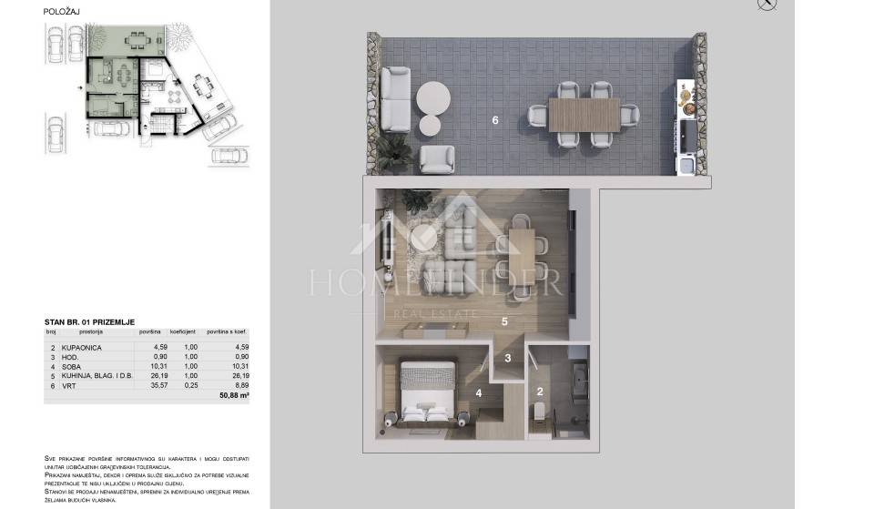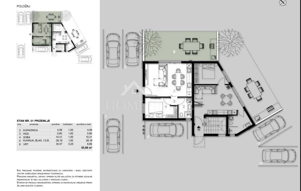 U prodaji je moderan stan u prizemlju novogradnje smješten u mirnom dijelu Njivica na otoku Krku, svega 400 metara od mora i prekrasnih plaža. Ova elegantna novogradnja kombinira suvremenu arhitekturu, vrhunske materijale i funkcionalan raspored prostora, idealan za ugodan boravak ili investiciju.
