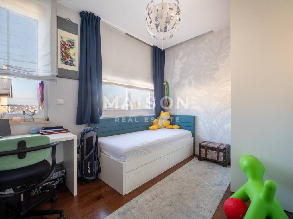 Posebna prednost ove nekretnine je ograđeni privatni park/šumica s trampolinom i dodatnom opremom za djecu, kao i tri pripadajuća parkirna mjesta. Stan se iznajmljuje potpuno opremljen, s kompletnim uređajima i aparatima, te je odmah dostupan.