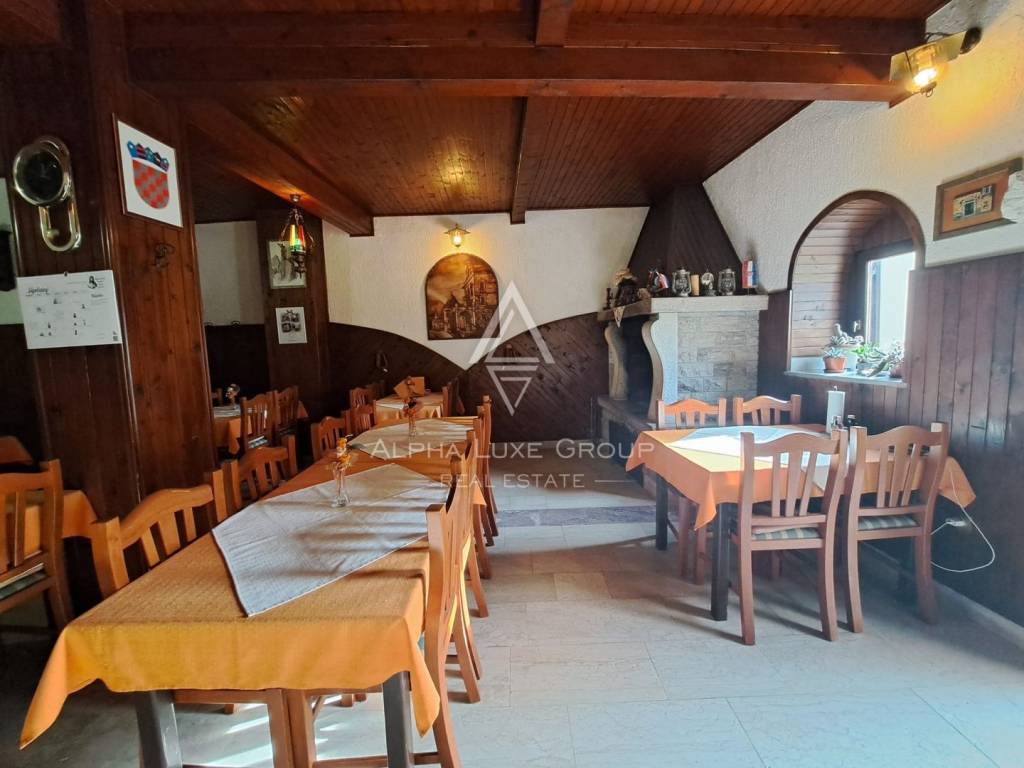 Zgrada se prostire na dvije etaže s ukupnom unutarnjom površinom od približno 300 četvornih metara. Prizemlje je namijenjeno potpuno operativnom restoranu površine oko 140 četvornih metara, koji uključuje profesionalno opremljenu kuhinju, bar, blagovaonicu s kapacitetom od oko 100 gostiju, otvoreni kamin za ugodnu atmosferu tijekom zimskih mjeseci, skladišne prostore te sanitarne čvorove za goste i osoblje. Natkrivena terasa omogućuje korištenje tijekom cijele godine i predstavlja veliku dodatnu vrijednost za ugostiteljsku djelatnost.