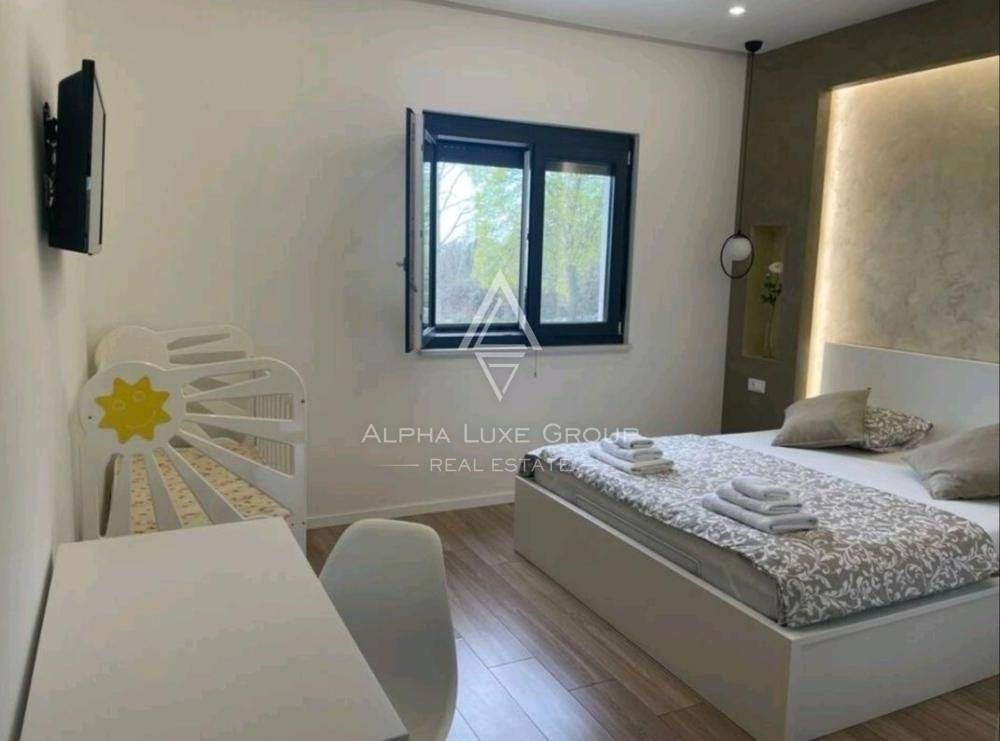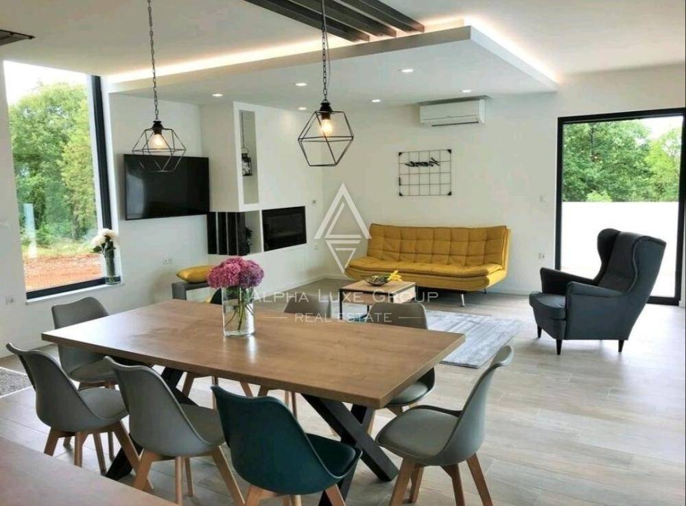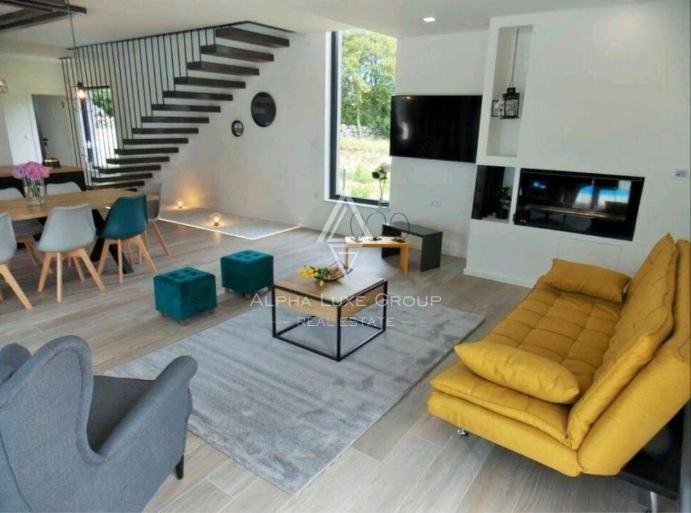 Sve sobe su opremljene klima uređajem i čvrstim kaminom na gorivo u dnevnom boravku. Vanjski okvir je izrađen od PVC-a i sastoji se od automatskih aluminijskih podizača roleta. Podovi su obloženi vrhunskom keramikom u cijeloj kući, dok je u spavaćim sobama postavljen laminat. U sklopu okućnice se nalazi parking za dva vozila.
