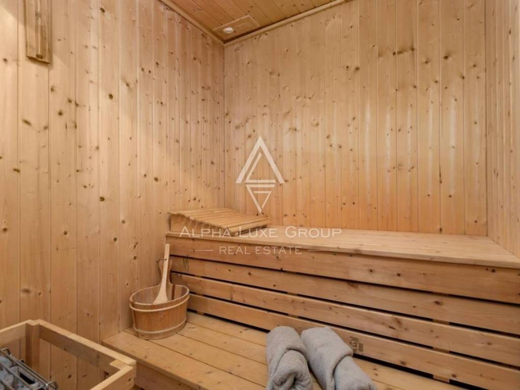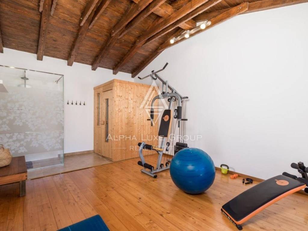 U prizemlju se nalazi dnevni boravak, kuhinja s blagovaonom, kupaonica, sauna i teretana. Unutarnjim stepenicama se dolazi na kat gdje se nalaze tri spavaće sobe i kupaonica.