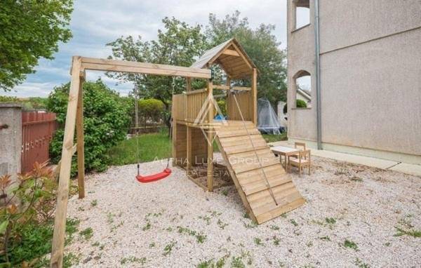 Vila, prostire se na prostranih 320 m2, a upotpunjena je vrtom od 650 m2. Razvija se na tri razine – prizemlje, prvi kat i potkrovlje, te uključuje dodatnih 21 m2 vrtnog objekta. Prizemlje nudi besprijekorni otvoreni životni prostor, koji integrira blagovaonicu i kuhinju, vodeći do pokrivene terase od 30 m2 s jacuzzijem i prostorom za opuštanje. Na ovoj razini nalaze se i tri ugodne spavaće sobe i kupaonica.