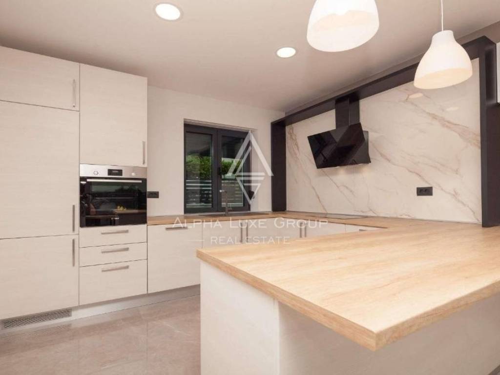 U ovom očaravajućem okruženju nalazi se luksuzna vila koja nudi zadivljujući pogled na Jadransko more. Ova moderna arhitektonska čuda, dizajnirana po besprijekornim standardima, kombinira prostranu eleganciju sa suvremenim stilom. Unutrašnjost vile obasjana je prirodnim svjetlom, zahvaljujući prostranim staklenim zidovima, a svaka soba svjedoči luksuznom, suvremenom životu.