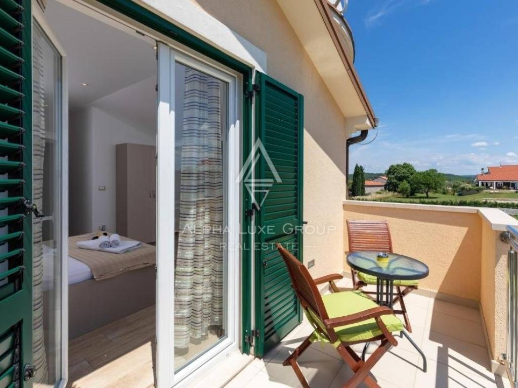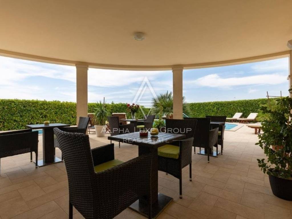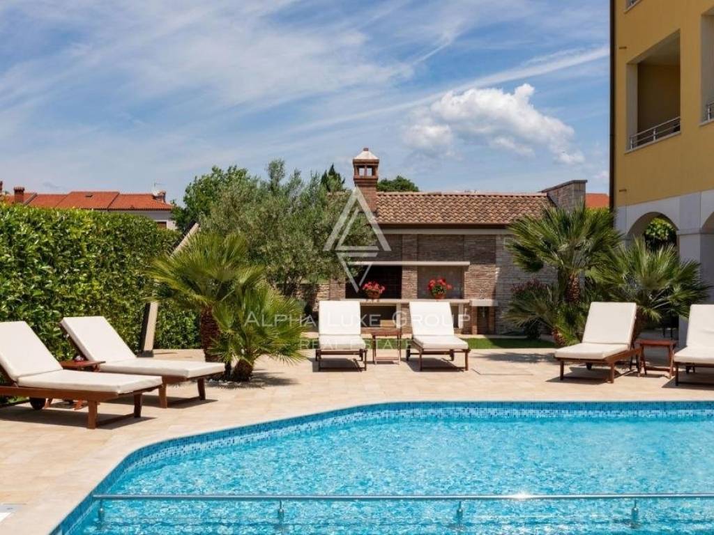 Gosti mogu uživati u kulinarskim delicijama u prostranom blagovaonskom prostoru koji se otvara na natkrivenu terasu s predivnim pogledom na vrt. Središnji dio vrta je veličanstveni bazen od 80 m², idealno mjesto za opuštanje pod istarskim suncem. Hotel nudi prostran prostor za skladištenje u podrumu, osiguravajući glatko poslovanje i zadovoljstvo gostiju. Smještaj za parkiranje 12 vozila, uključujući 7 natkrivenih mjesta, osigurava lakoću i sigurnost za goste.