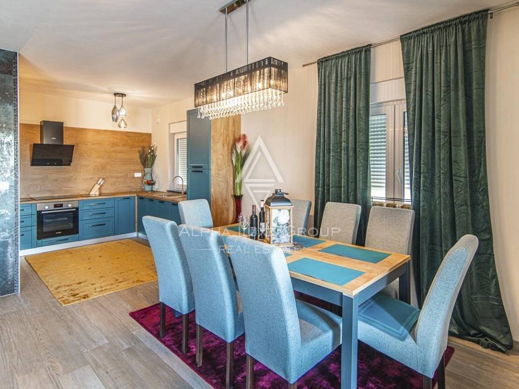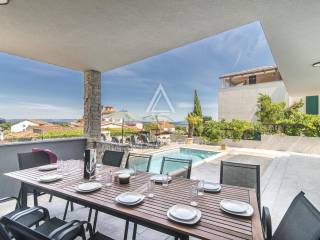 Izgrađena 2019./2020. godine, s 10-godišnjom garancijom izvođača, ova kuća se ponosi panoramskim pogledom na more s povišenog položaja. Zauzima parcelu od 574 m2 s prostranih 190 m2 stambenog prostora.