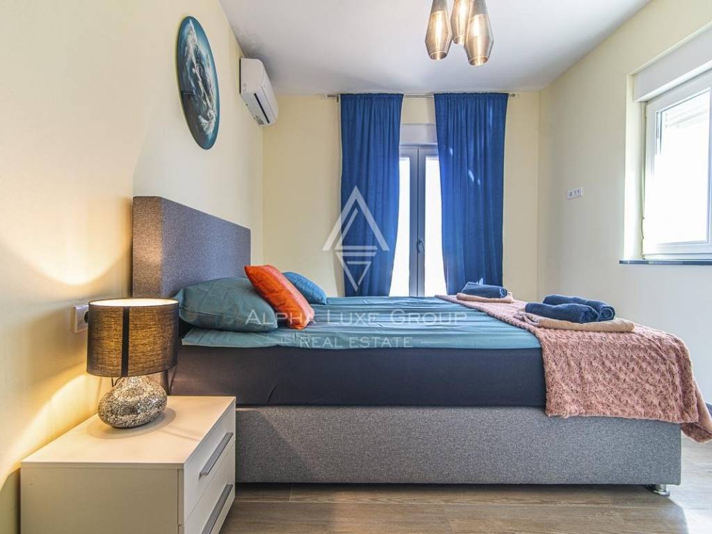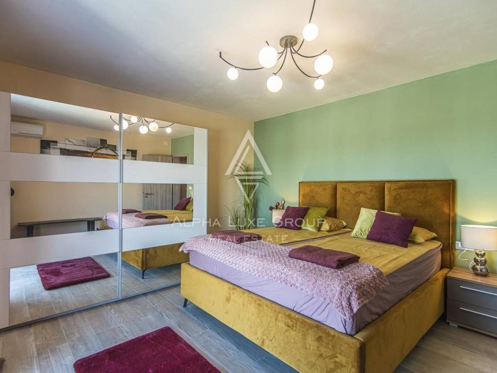 Vila se otvara u prostrani dnevni boravak s integriranom kuhinjom i blagovaonicom. U prizemlju se nalazi i spavaća soba, kupaonica te velika ostava savršena za kućanske potrebe. Prostrani stakleni zidovi dnevnog boravka vode do natkrivene ljetne kuhinje i luksuznog bazena. Na prvom katu se nalaze 4 spavaće sobe, 2 kupaonice i dvije terase. Glavna spavaća soba, s izravnim pogledom na more i pristupom na terasu, nudi nenadmašan luksuz. Gotovo svaka soba u ovoj vili uživa u zadivljujućem pogledu na more.