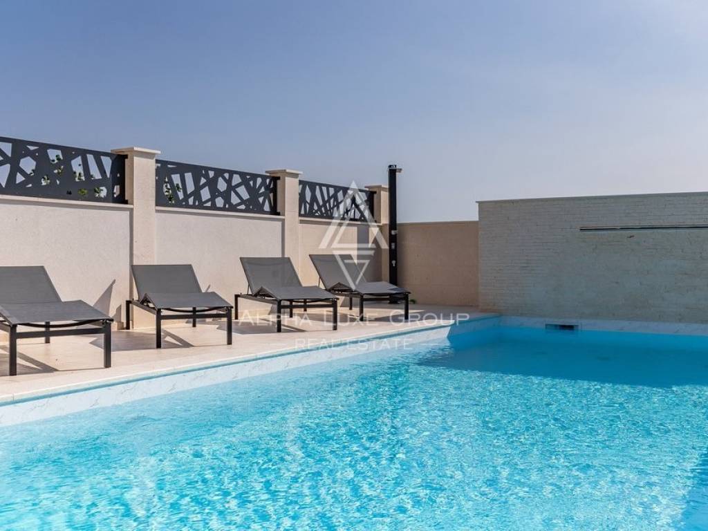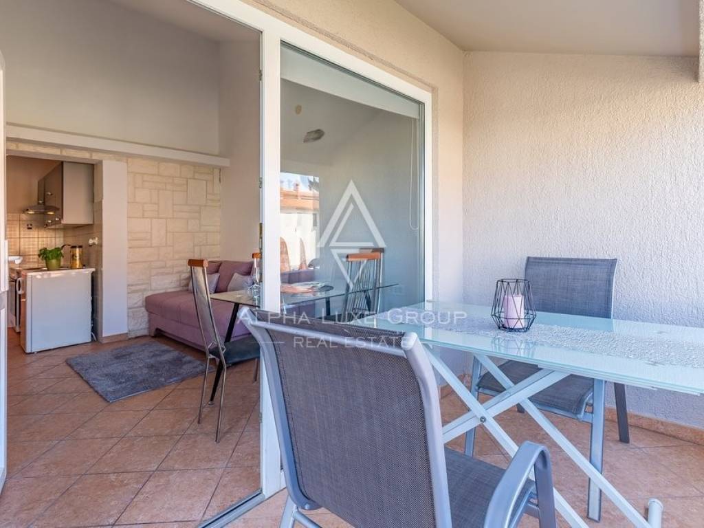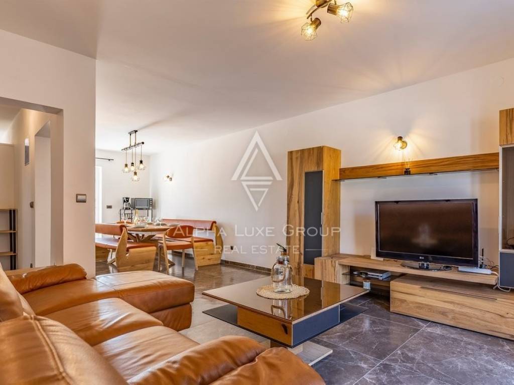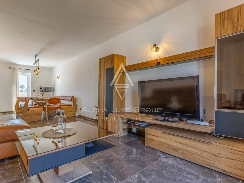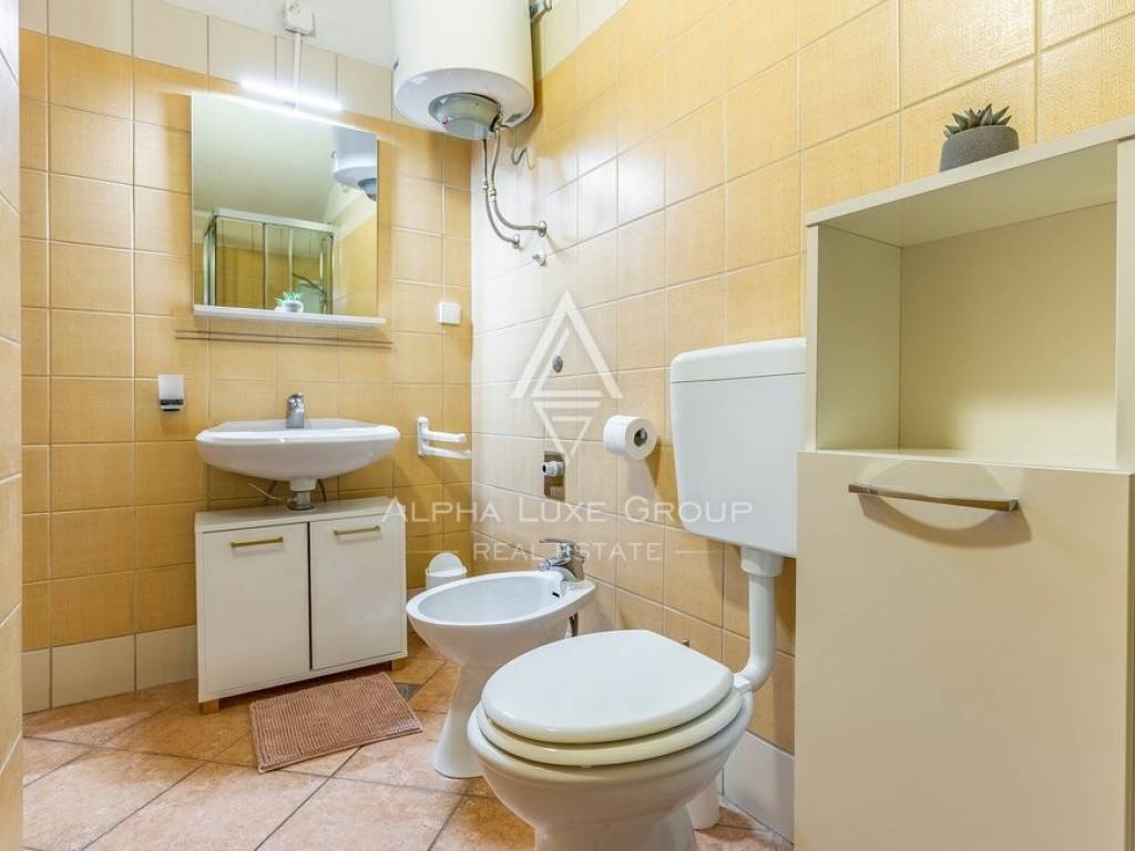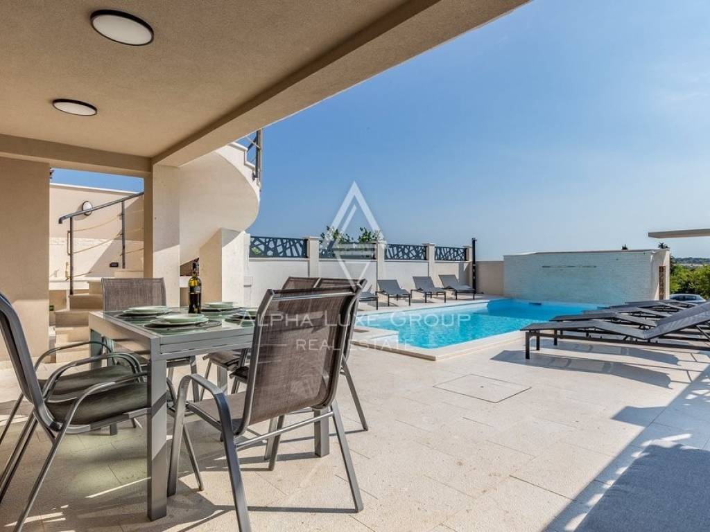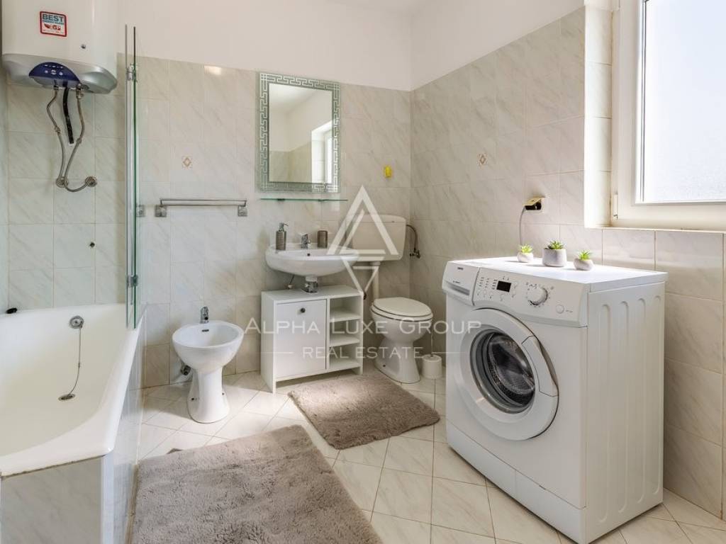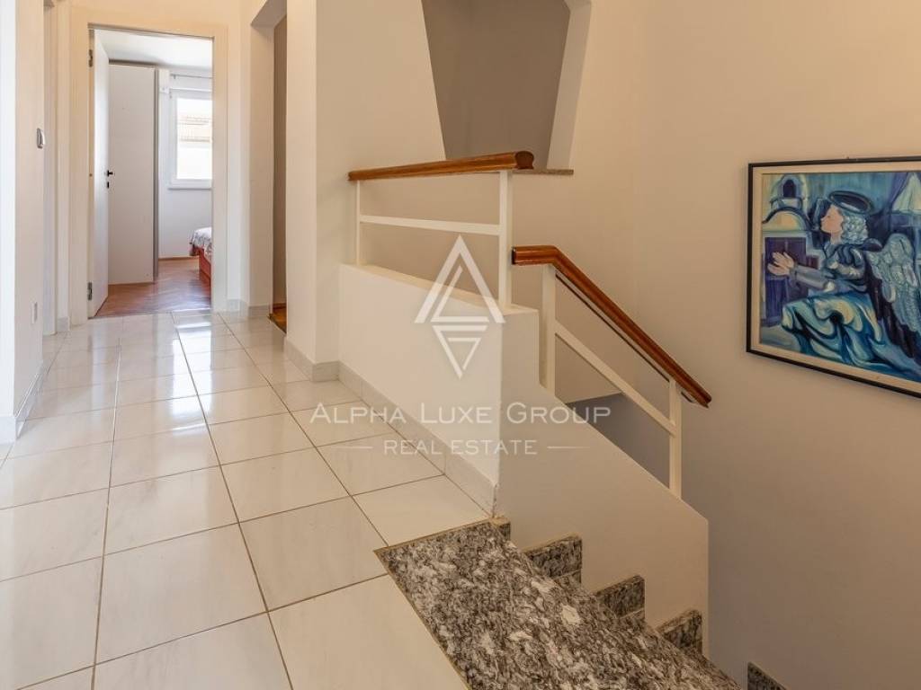 Rezidencija je jedinstveno dostupna s dvije strane, nudeći jedno parkirno mjesto unutar dvorišta i dodatne mogućnosti parkiranja ispred. Vanjski prostor obogaćen je grijanim bazenom od 32m2, prostorom za roštilj, vanjskim tušem i WC-om, savršenim za odmor i zabavu. Prodaje se potpuno namještena, spremna za odmah useljenje.