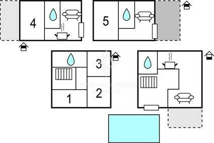 Apartman 1: Dupleks od 120m2 (60m2 na svakom katu), s dnevnim boravkom i kuhinjom na donjoj razini, te 3 spavaće sobe i 2 kupaonice na gornjoj razini.