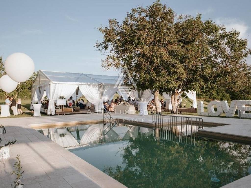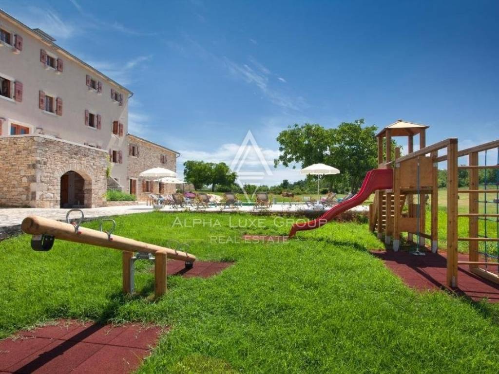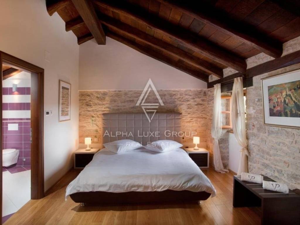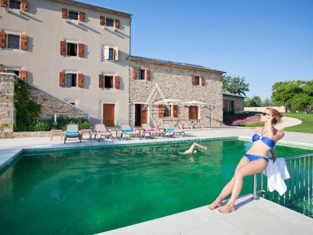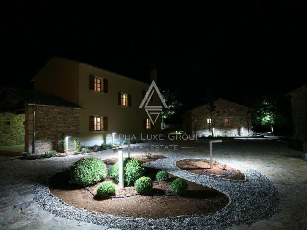 Ovo imanje je svestrano i idealno za osobnu upotrebu, turistički najam ili organizaciju događanja poput vjenčanja, team building okupljanja i drugih proslava. Glavna kamena zgrada i dva manja objekta pažljivo su renovirana s pažnjom na svaki detalj, kombinirajući tradicionalnu istarsku arhitekturu s modernim pogodnostima. Nekretnina ima ukupno sedam spavaćih soba, šest kupaonica i četiri dodatna toaleta. Glavna kuća ima dva dvorišta, svako s kuhinjom i blagovaonicom, te dva prostrana dnevna boravka. Treći dnevni boravak s blagovaonicom nalazi se u jednoj od manjih zgrada.