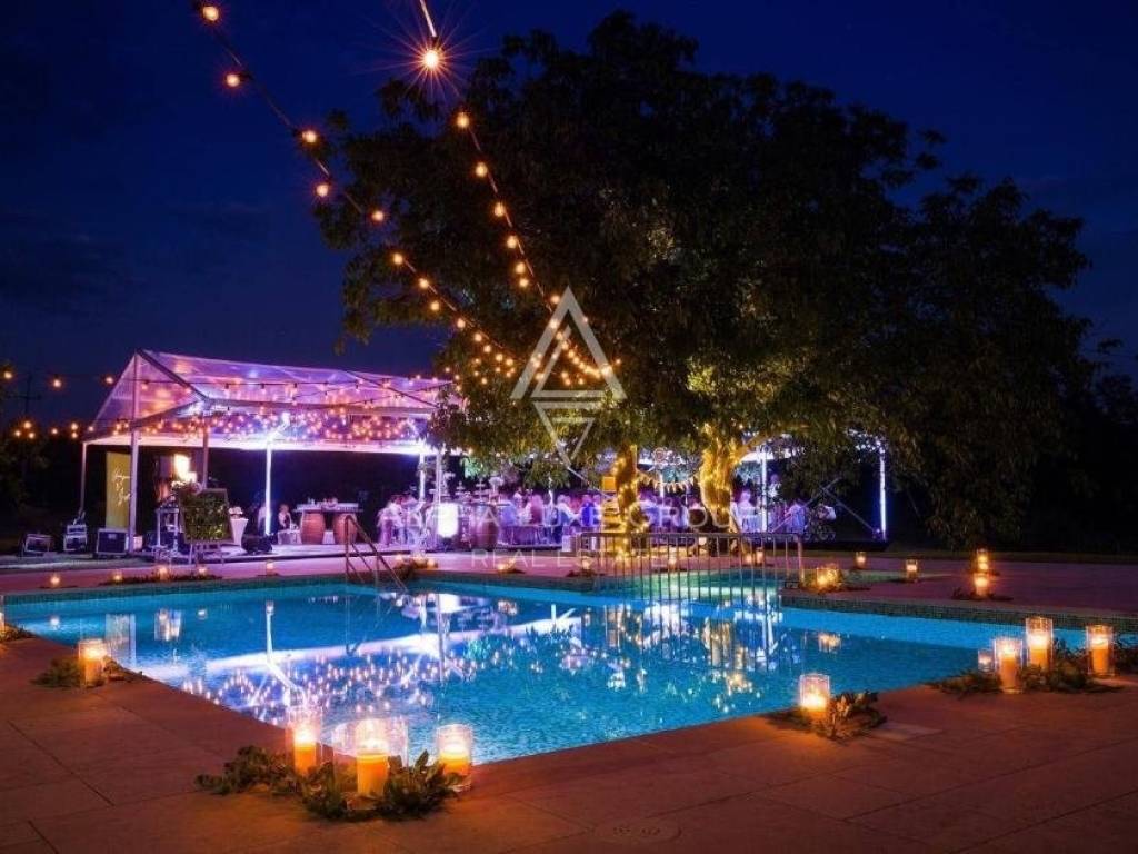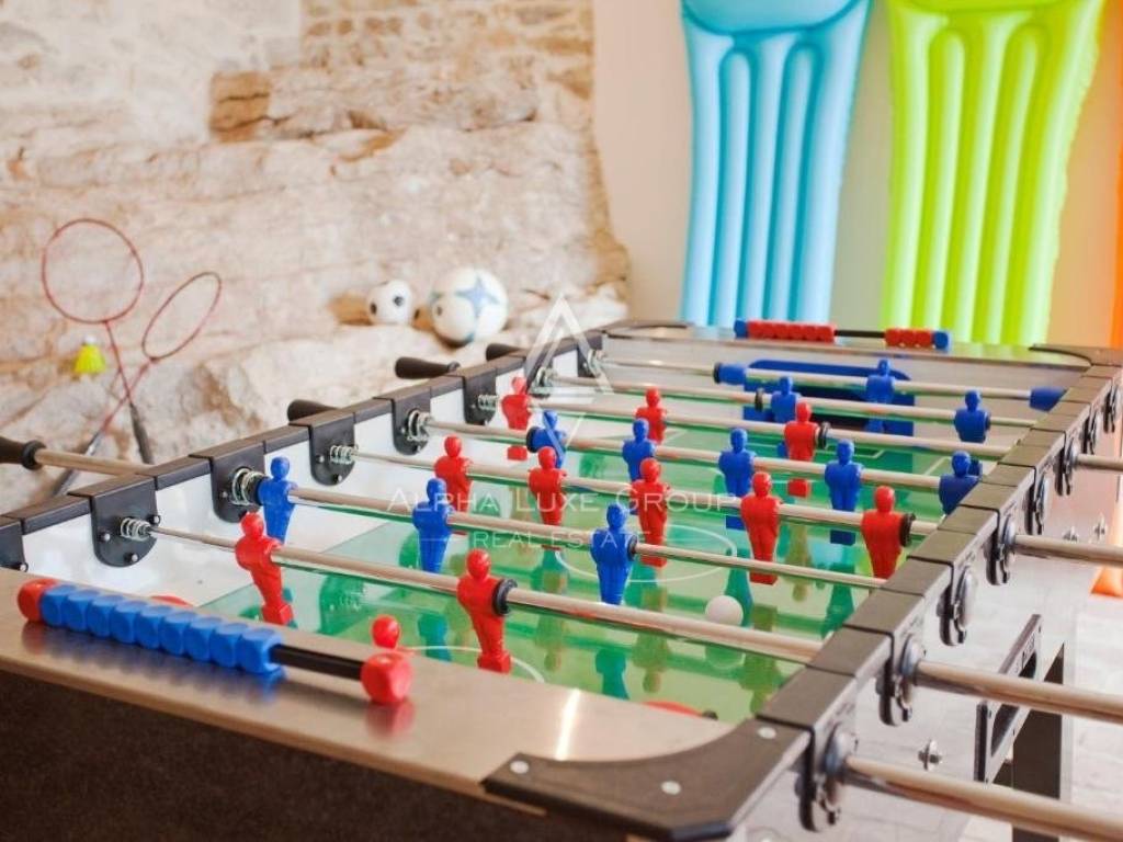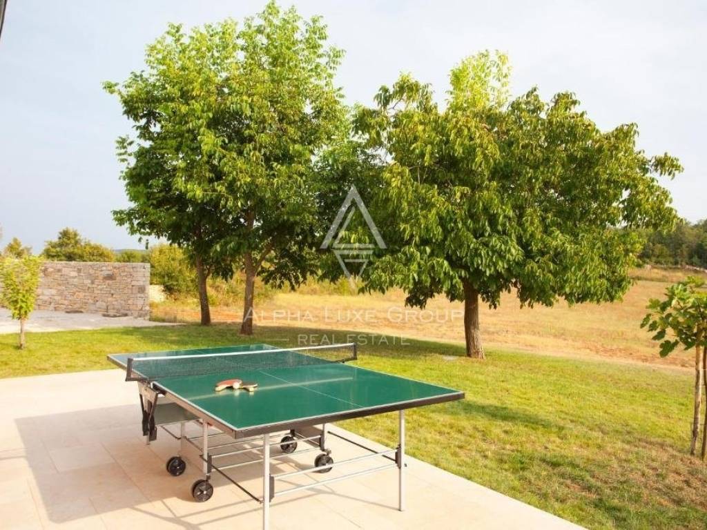 Prostrano vanjsko područje dizajnirano je za opuštanje i zabavu, s kamenim terasama, velikim bazenom, dječjim bazenom, igralištem i roštiljem. Dodatne pogodnosti uključuju mini nogometno igralište i dovoljno prostora za društvena okupljanja. Imanje može primiti do 25 gostiju, što ga čini izvrsnom prilikom za privatnu uživanciju ili kao uhodan posao u najmu nekretnina.