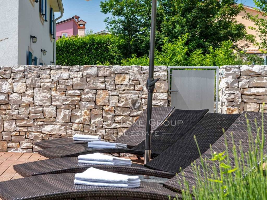 Modernost vile proteže se i na njezine sadržaje, uključujući vrhunski klima uređaj i sustav podnog grijanja. Vanjski prostor je sam po sebi raj, s bazenom od 32 m2 s opcionalnim sustavom grijane vode, uz očaravajuće dječje igralište, smješteno unutar prekrasno uređenog vrta.
