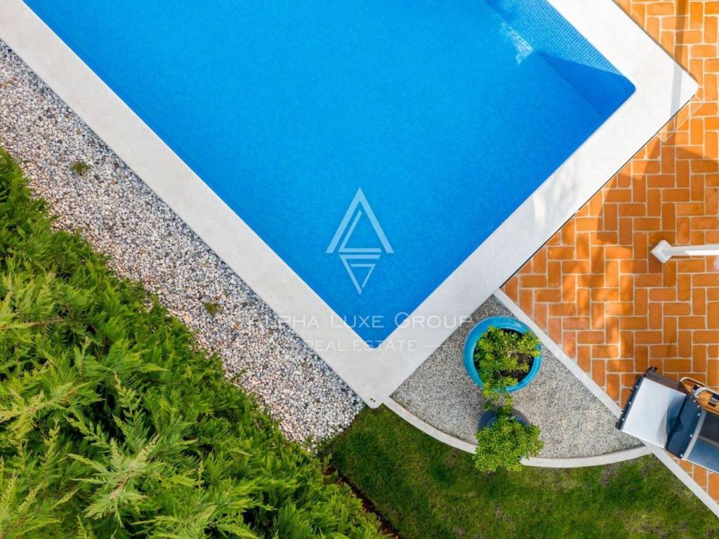 Ova elegantna nekretnina ima tri prostrane spavaće sobe, svaka s privatnom kupaonicom, pružajući maksimalnu udobnost. Vanjski prostor uključuje privatni bazen od 28 m², prekrasno uređen mediteranski vrt i blagovaonicu na terasi, savršenu za obiteljska okupljanja i zabave. Unutrašnjost vile krasi profinjen dizajn s luksuznim zavjesama, lusterima i dizajnerskim detaljima. Krovna terasa nudi zadivljujući pogled, idealan za uživanje u zalascima sunca uz čašu vrhunskog istarskog vina, dok roštilj upotpunjuje vanjski prostor.