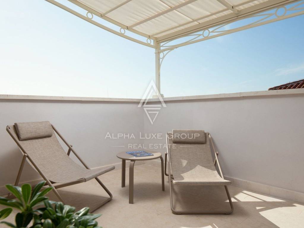 Vanjski prostor dodatno podiže standard života s više terasa, uključujući krovnu terasu s panoramskim pogledom na more. Uređeni vrt obogaćen je privatnim bazenom, sunčanom terasom i dvije zone za roštilj, idealne za okupljanja. Svaki kutak nekretnine odražava pažljivo osmišljene detalje, od profinjenih lustera do skladnih dizajnerskih elemenata, stvarajući neponovljivo iskustvo luksuznog života.