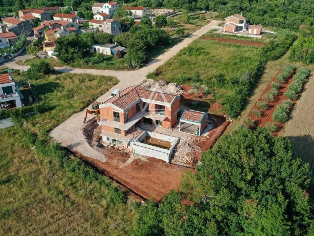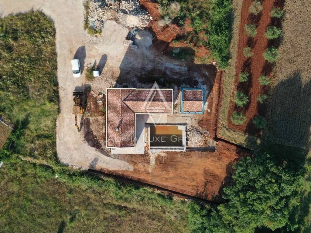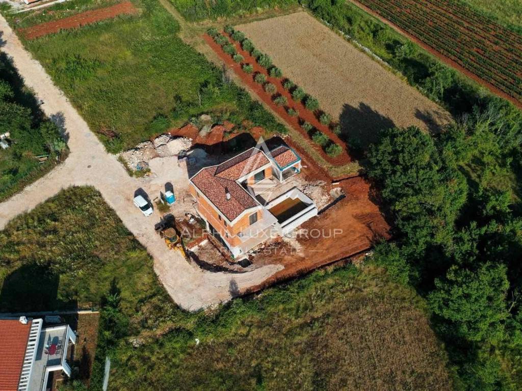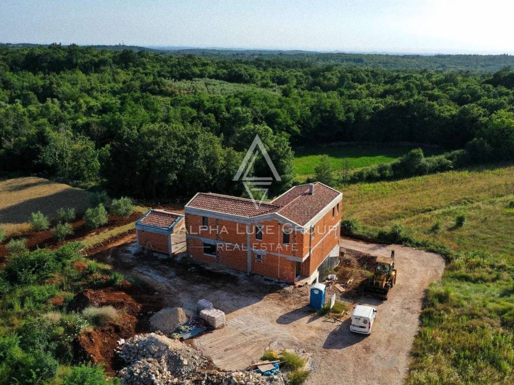 Smještena na rubu mirnog istarskog sela, samo 7 km od Višnjana, ova novoizgrađena vila nudi savršen spoj luksuza, privatnosti i prirode. Završetak gradnje planiran je za ljeto 2025., a vila se proteže na tri etaže: polu-suterensku, prizemnu i katnu.