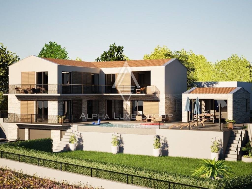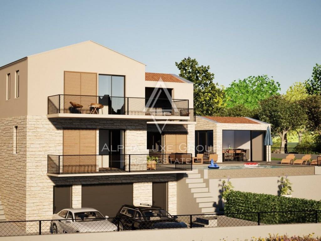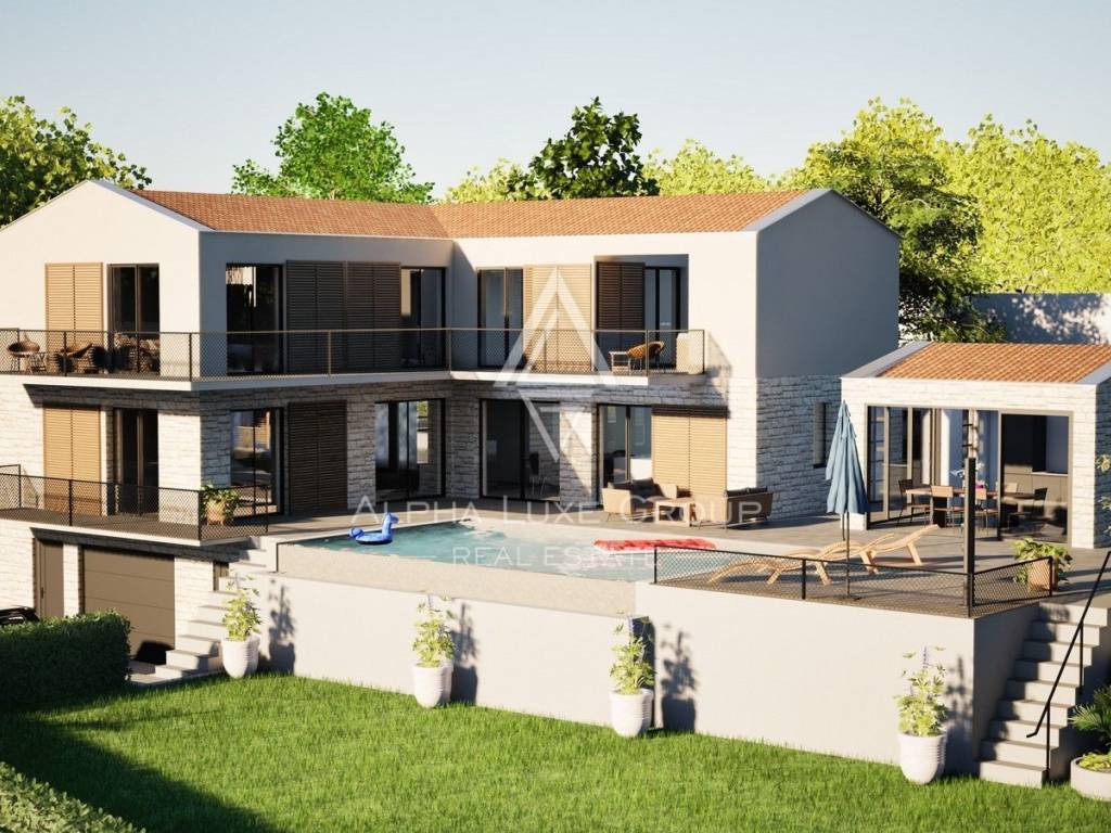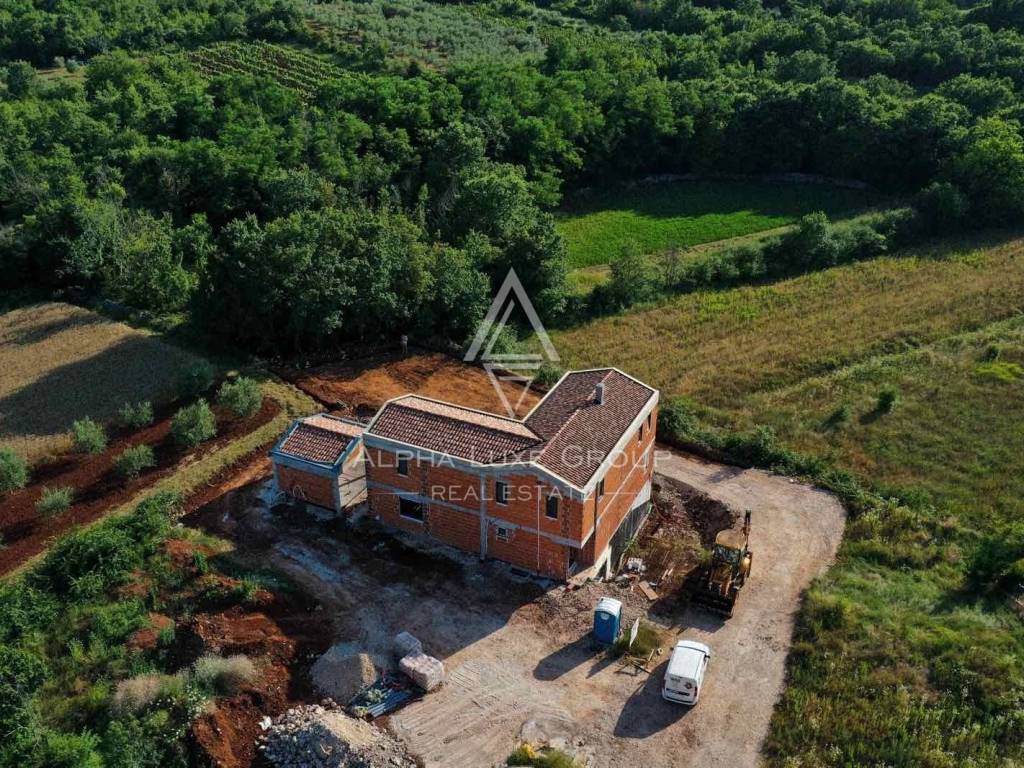 Smještena na rubu mirnog istarskog sela, samo 7 km od Višnjana, ova novoizgrađena vila nudi savršen spoj luksuza, privatnosti i prirode. Završetak gradnje planiran je za ljeto 2025., a vila se proteže na tri etaže: polu-suterensku, prizemnu i katnu.