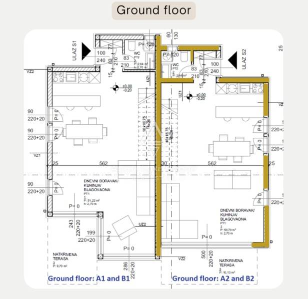 Ukupna stambena površina iznosi 173,28 m², a okućnica 180 m². Nekretnina uključuje dvije privatne parkirne pozicije, klimatizaciju i više terasa, uključujući panoramsku krovnu terasu. Promišljen raspored i elegantna izvedba čine ovu kuću idealnim domom ili luksuznim odmorištem.