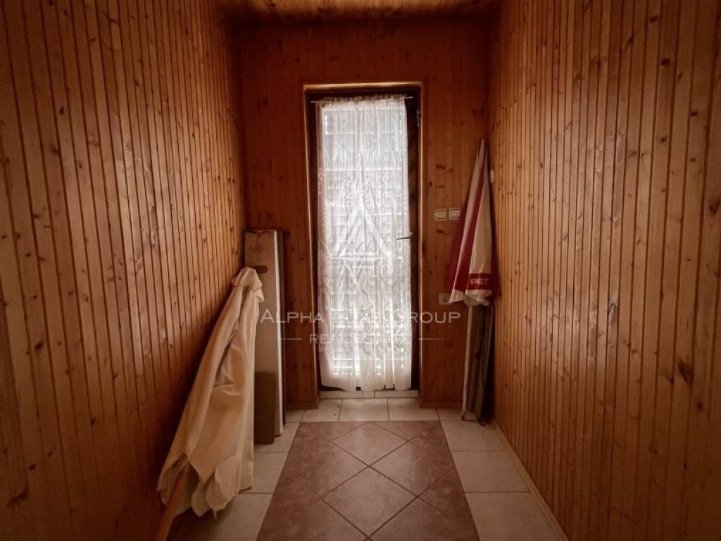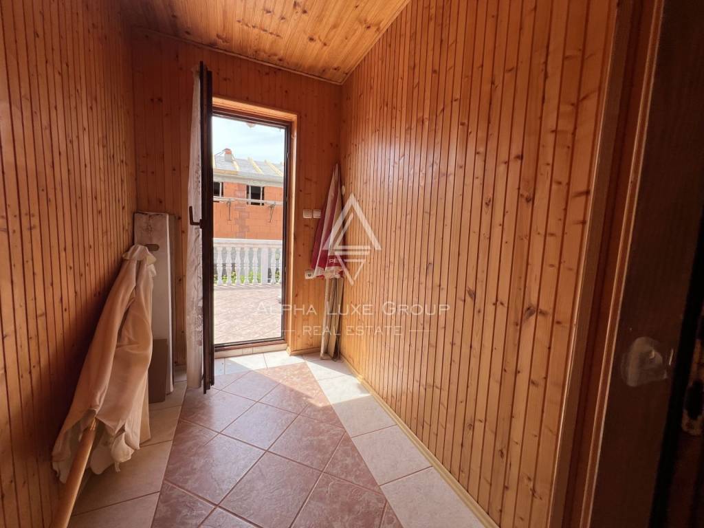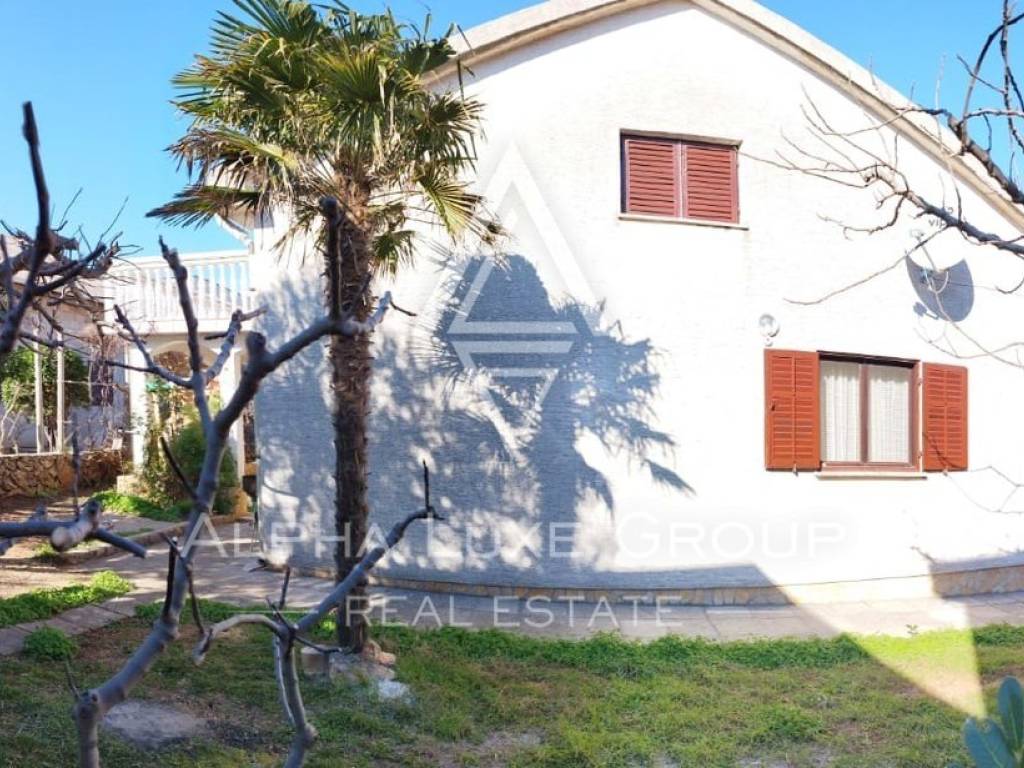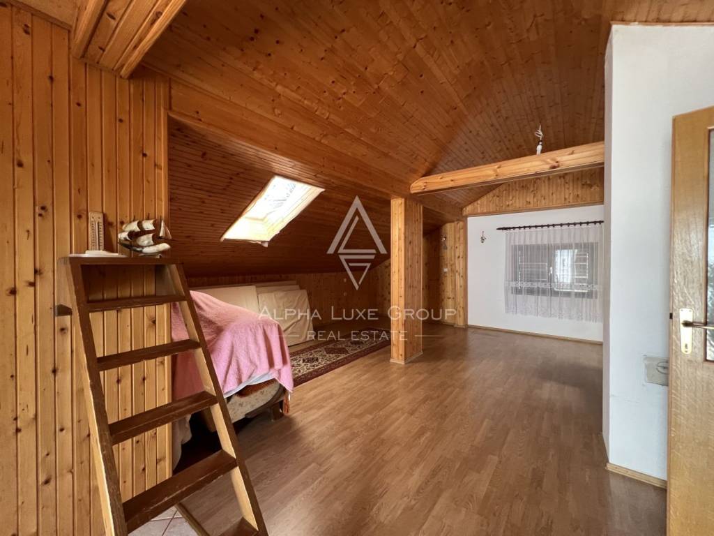 Okućnica je ograđena i lijepo uređena bujnim zelenilom, pružajući mir i privatnost. Nekretnina također uključuje garažu s malim toaletom, što osigurava dodatnu praktičnost i prostor za pohranu.