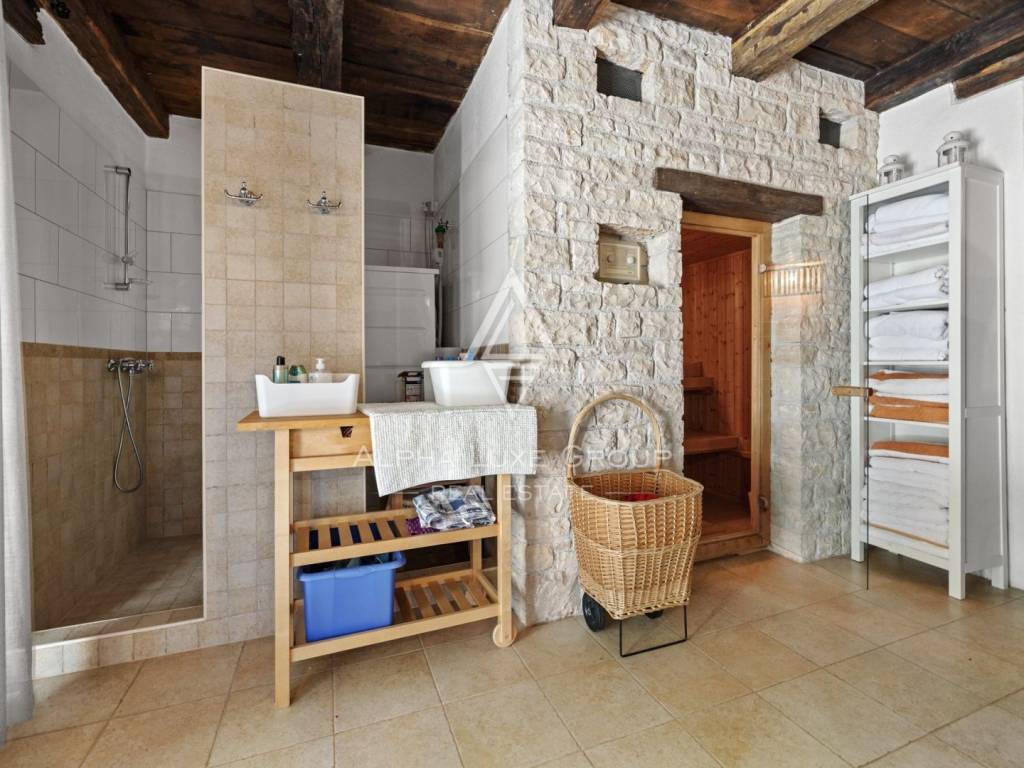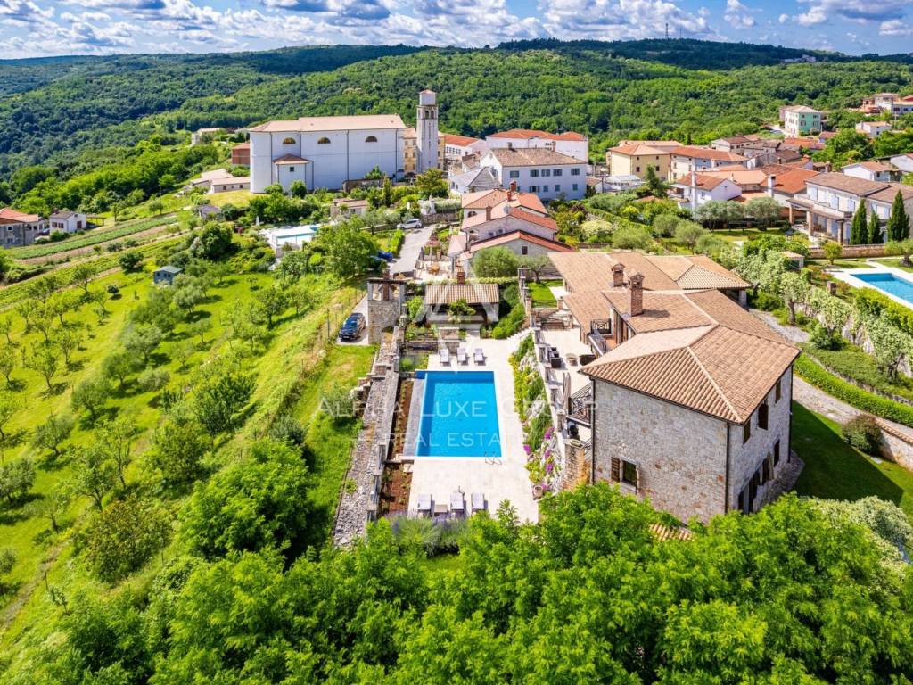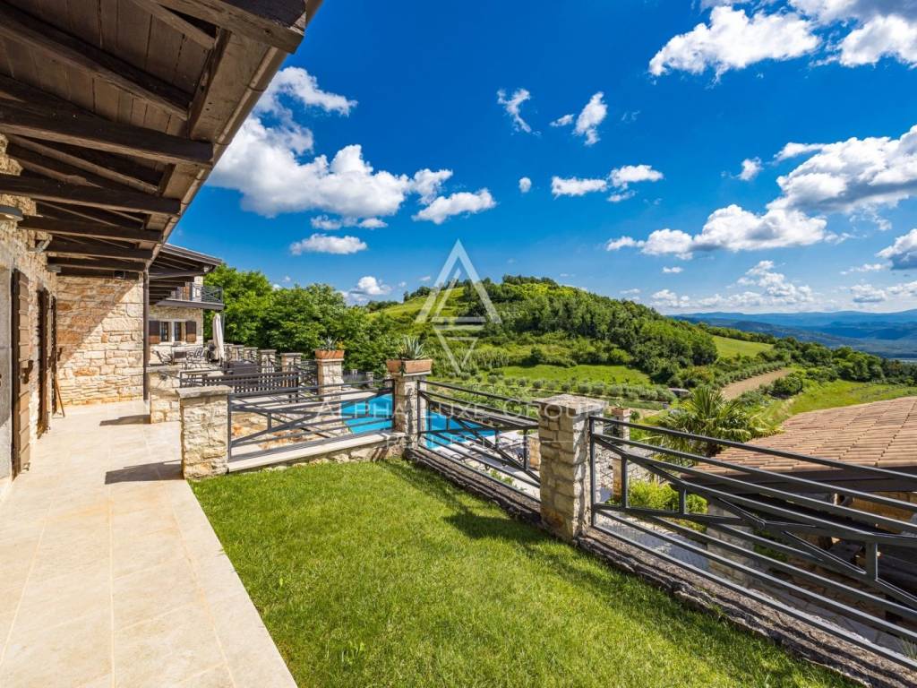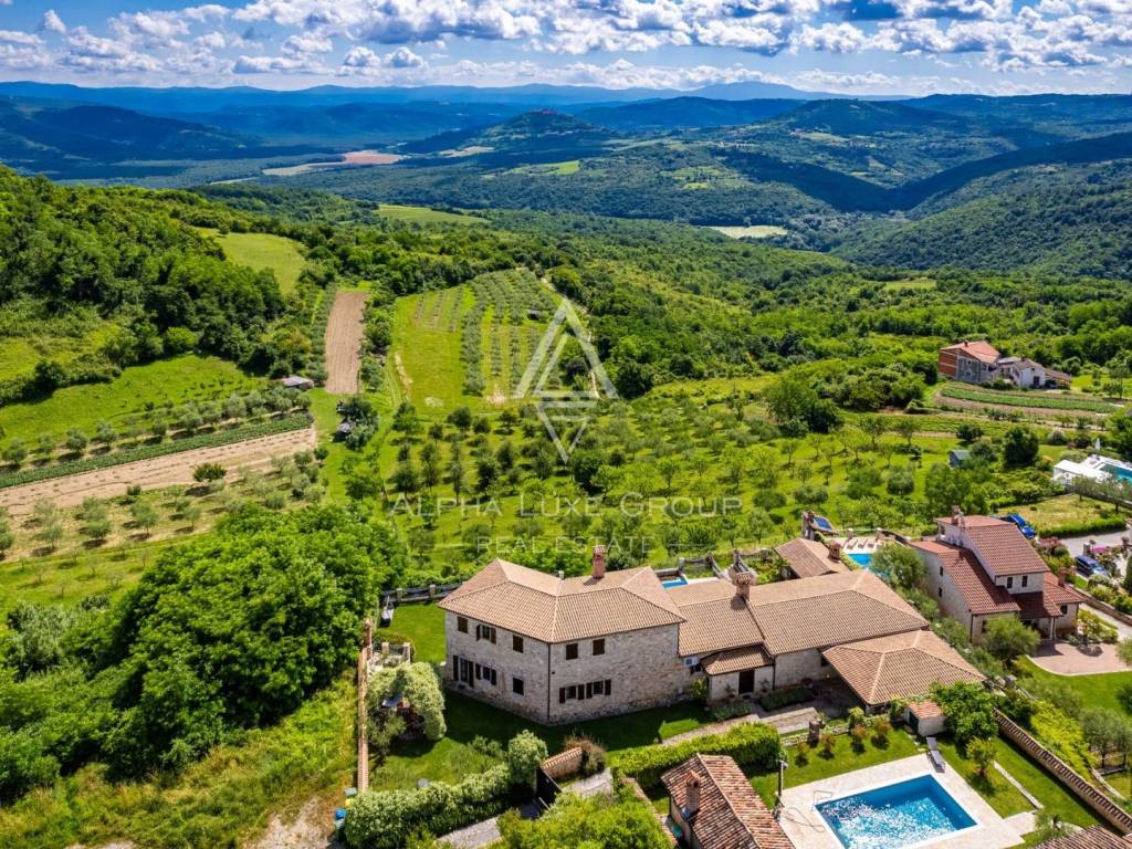 Ova prekrasna vila objedinjuje sve elemente za luksuzni odmor ili miran život. Vila je spoj prirodnih materijala, kamena i drveta, koji se savršeno spajaju u modernom domu i daju osjećaj ugode. Njezina veličina, prekrasni dizajn, kvaliteta gradnje te uređenost i opremljenost garantiraju udobnost i eleganciju življenja. Osim njezine ljepote i sadržaja, odlična lokacija vam omogućuje da doživite sve čari unutrašnjosti Istre - vinske regije blizu poznatih vinara, restorana, raznolike gastro-vinske ponude, blizu biciklističkih staza, a na samo desetak minuta udaljenu od mora i gradskih sredina. Idealna je za zaljubljenike u prirodu i aktivnog odmor, a u blizini je Motovuna i ostalih poznatih turističkih mjesta koji nude veliki izbor sadržaja.