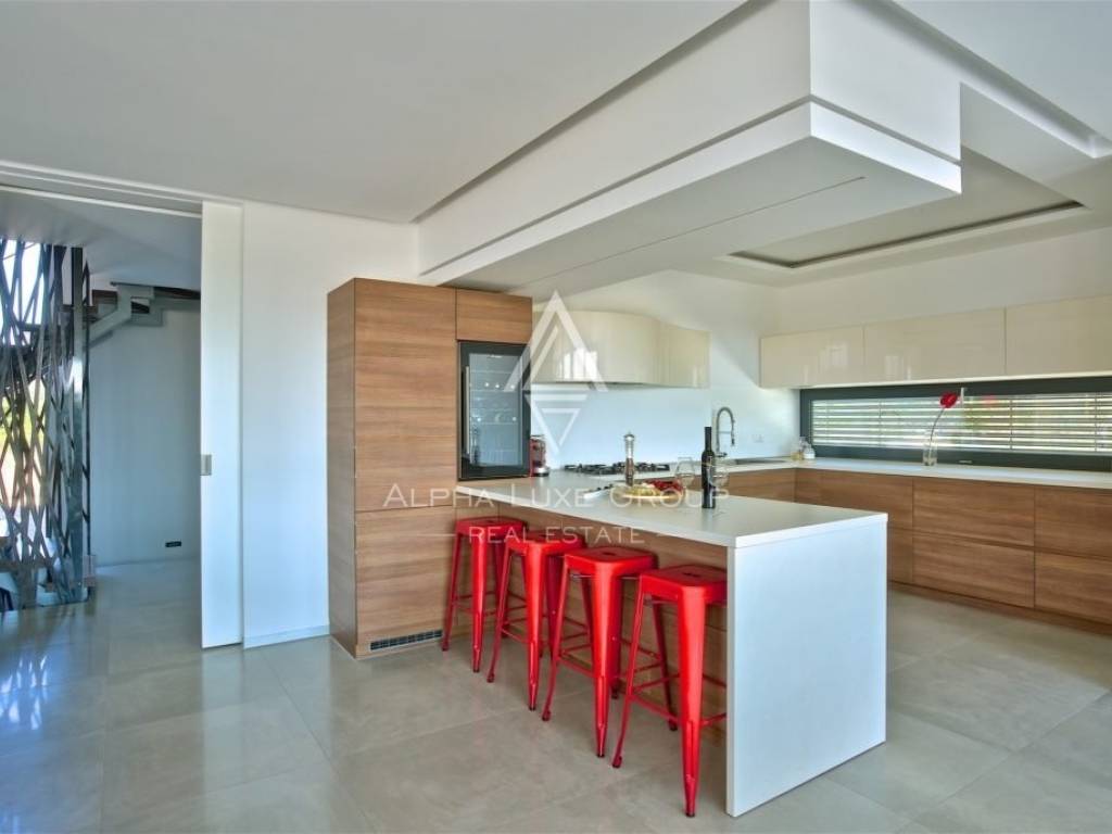 Ova luksuzna vila igra se oblicima i bojama, što rezultira minimalističkom, ali šarenom i nadasve privlačnom i toplom mješavinom. Prostran i otvoren raspored prate veliki prozori i francuska vrata, koji propuštaju puno prirodnog svjetla tijekom cijelog dana.
