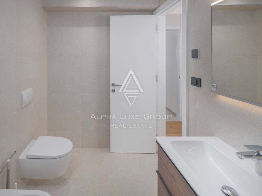 Stan se sastoji od četiri spavaće sobe, tri moderne kupaonice, prostrane dnevne zone te više terasa i balkona. Zahvaljujući zapadnoj orijentaciji, stan obiluje prirodnim svjetlom tijekom cijelog dana. Balkon nudi predivan pogled na more, naglašavajući luksuzan i opuštajući karakter prostora.