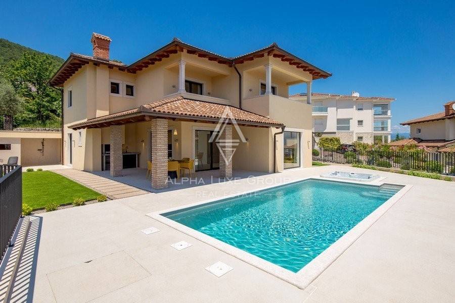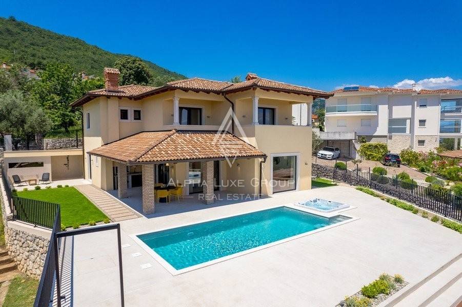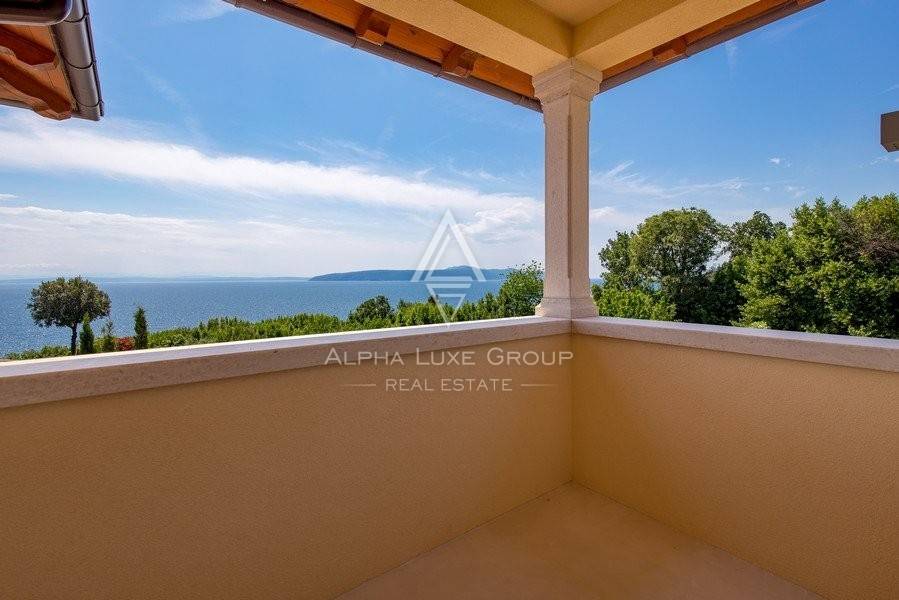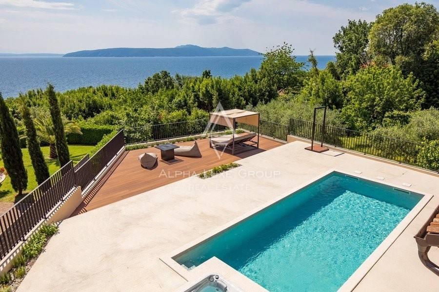 Ova prekrasna nekretnina nudi prekrasan pogled na more i otok Cres, s okućnicom od 830 m² i stambenom površinom od 200 m², pruža potpunu privatnost i mir.