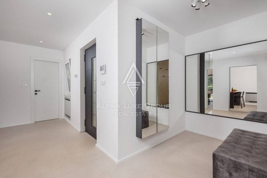 Smještena u prekrasnom mediteranskom okruženju, ova vila s bazenom prodaje se namještena i nekorištena. Sav namještaj je ručni rad. Zgrada ima podno grijanje, toplinsku pumpu i + fan coil. Alarmni sustav, kamera. Kamenje po vrtu, egzotične biljke. Iznutra, luksuzni mikrocement daje kući jedinstvenu atmosferu.