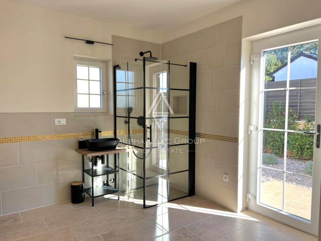 Na prodaju nudimo prekrasnu kuću udaljenu samo nekoliko kilometara od centra Poreča, trenutno u završnoj fazi izgradnje. S izraženim dizajnom koji kombinira istarski stil s daškom španjolske arhitekture, smještena je na zemljištu površine 712 m2. Ova nekretnina uključuje bazen, vrt, terasu, roštilj i parkirna mjesta. Kuća je na dvije etaže: prizemlje površine 102 m2 sastoji se od dnevnog boravka povezanog s kuhinjom i blagovaonicom, hodnika, WC-a, tehničke prostorije, saune, spavaće sobe, kupaonice i terase. Ako želite, umjesto saune možete napraviti dodatnu spavaću sobu. Na prvom katu površine 72 m2 nalazi se galerija i dvije spavaće sobe, svaka sa svojom kupaonicom i terasom. Ova nekretnina dizajnirana je s naglaskom na detalje te je idealna kao obiteljska kuća ili investicijska prilika.