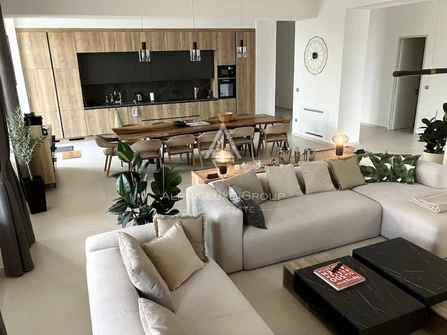 Prostirući se na 260 m², sunčano orijentiran životni prostor vile sadrži velika staklena okna, pružajući obilje prirodnog svjetla i ugodnu atmosferu savršenu za opuštanje i druženje. Prizemlje vodi do prostrane terase od 150 m² i grijani bazen od 52 m², idealnih za vanjske aktivnosti i zabavu. Osim toga, podrum vile od 138 m² uključuje potpuno opremljeno wellness područje s finskom saunom, tušem i prostorom za opuštanje. Prostor nudi i dodatne mogućnosti za prilagodbu, poput vinskog podruma, fitness studija ili sobe za biljar.