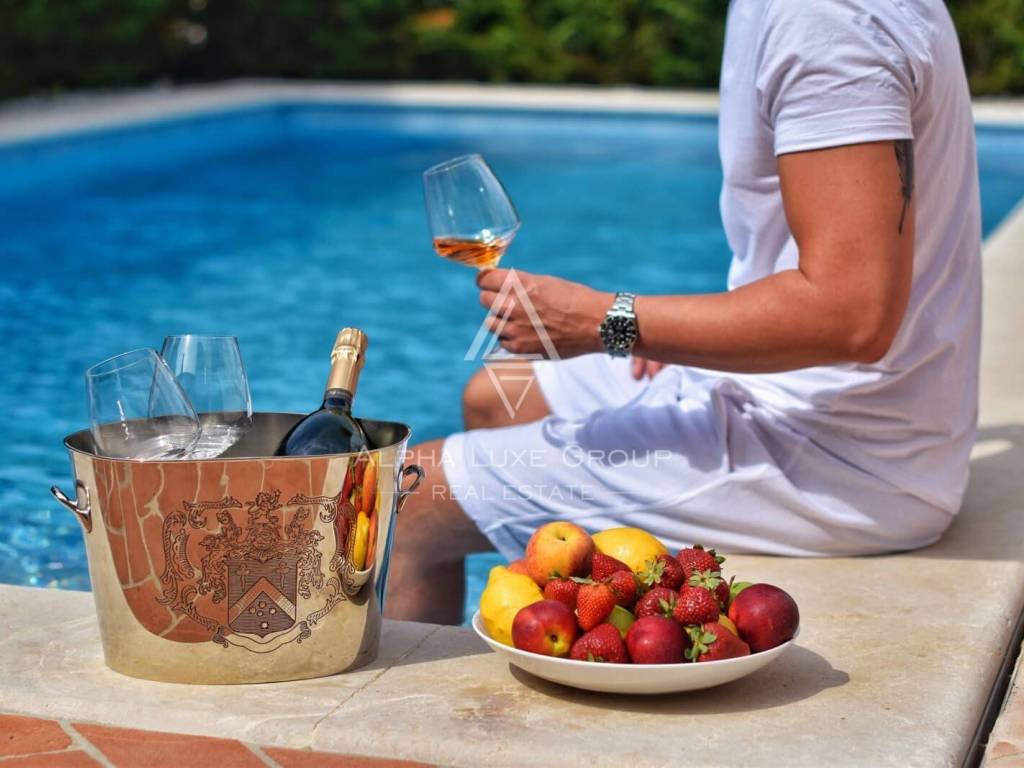 Vila se ističe mediteranskim vrtom s bazenom od 33 m², prostorom za roštilj i udobnim vanjskim salonom. Krovna terasa pruža zadivljujući pogled na Jadransko more, savršena za uživanje u zalascima sunca. Svaki detalj unutrašnjosti pažljivo je osmišljen kako bi stvorio skladan i luksuzan ambijent. Idealna je za cjelogodišnji obiteljski život ili kao luksuzna kuća za odmor.