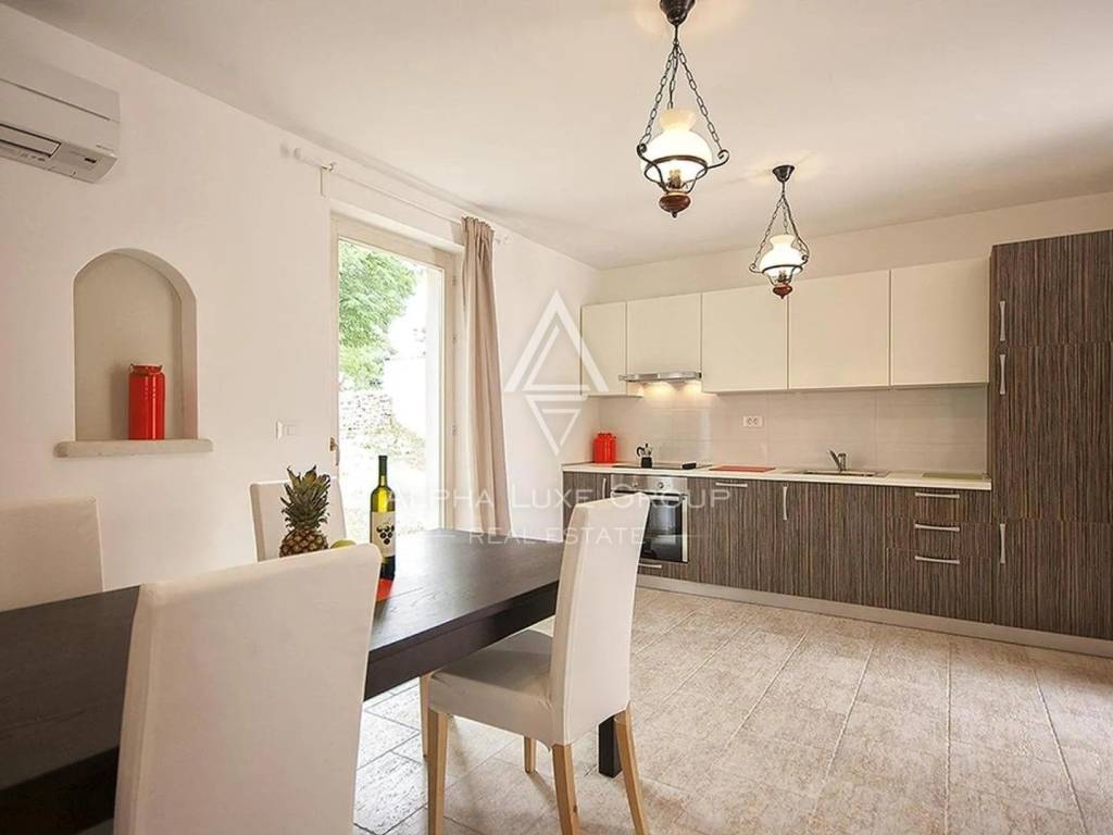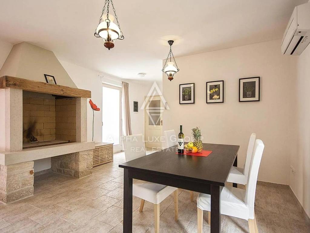 Oba apartmana imaju udoban dnevni boravak s kaminom koji pruža toplu i ugodnu atmosferu tijekom hladnijih mjeseci. Rustikalni dizajn vile ističe se kamenim zidovima i tradicionalnim detaljima, naglašavajući autentičnu ljepotu istarske arhitekture.