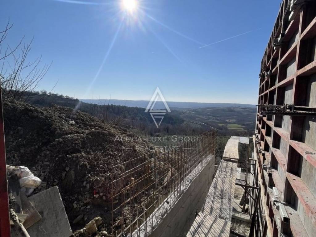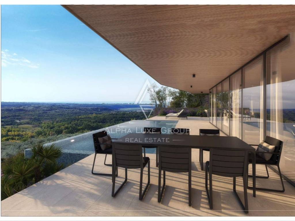 Ova elegantna vila jedinstvenog dizajna smještena je na vrhunskoj lokaciji u Krasici, pružajući zadivljujući panoramski pogled na Istru, uključujući vinograde, maslinike i slikovitu prirodu. Nekretnina se nalazi u osami, ali istovremeno na dohvat ruke nekim od najpoznatijih turističkih destinacija i prestižnih hotela u Istri, čime osigurava privatnost i praktičnost.