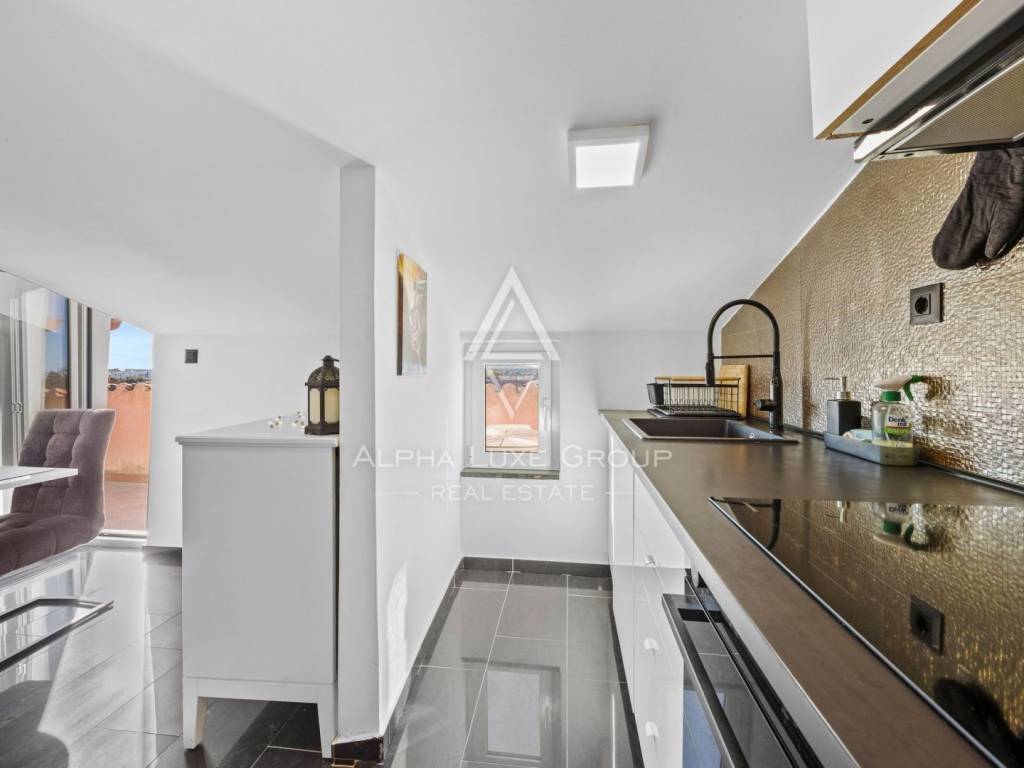 Samo 10 minuta vožnje od povijesne jezgre Rovinja, ovaj potpuno renovirani stan nudi izvrsnu priliku na atraktivnoj lokaciji. Smješten na posljednjem katu zgrade sa šest stambenih jedinica, stan ima ukupnu površinu od 93 m², uključujući terasu od 14,5 m² i privatni vrt od 57 m². Stan obuhvaća modernu kuhinju s blagovaonicom, hodnik, kupaonicu, dvije spavaće sobe i ured, koji je prvotno bio treća spavaća soba. Također ima spremište koje se može pretvoriti u dodatnu sobu.