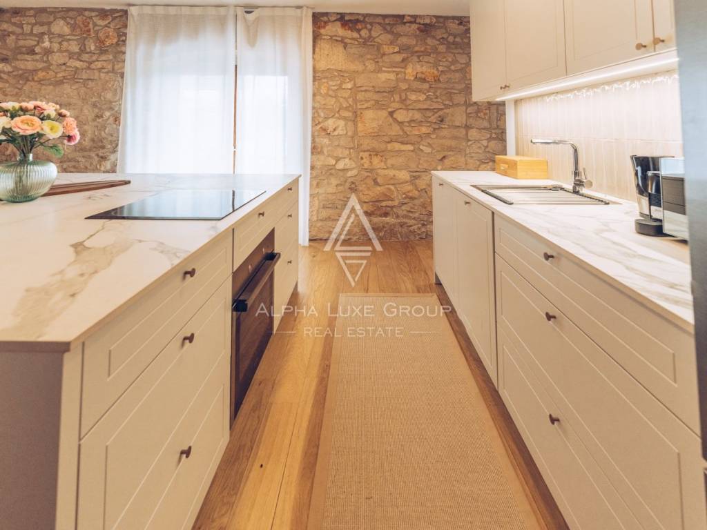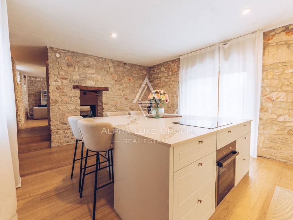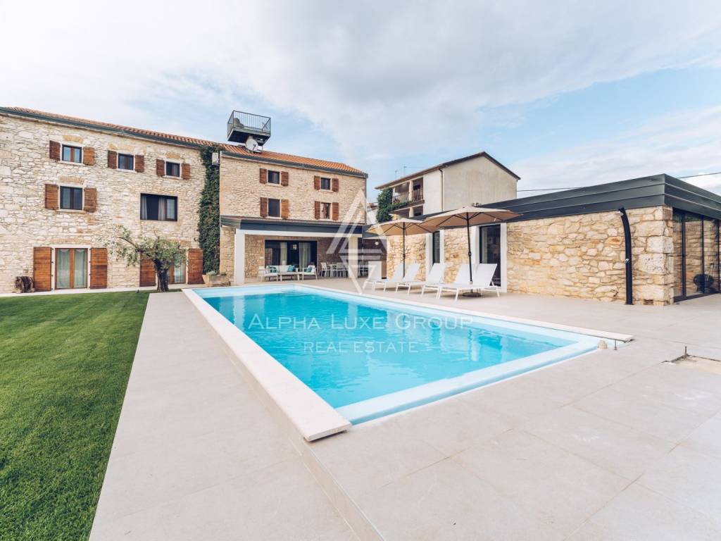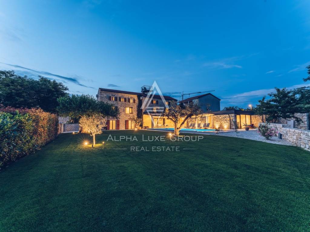 Smještena u mirnom području blizu Novigrada, ova prekrasna kamena vila nudi spoj privatnosti i moderne luksuznosti. Na zemljištu od 861 m² nalazi se uređeni vrt s ljetnom kuhinjom, saunom i grijanim beskonačnim bazenom. Vila se prostire na 312 m² i tri etaže. U prizemlju se nalazi dnevni boravak s galerijom, potpuno opremljena kuhinja s blagovaonicom i gostinjski toalet.