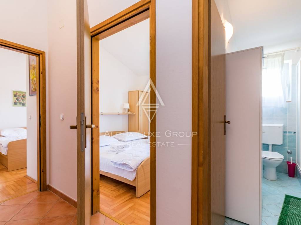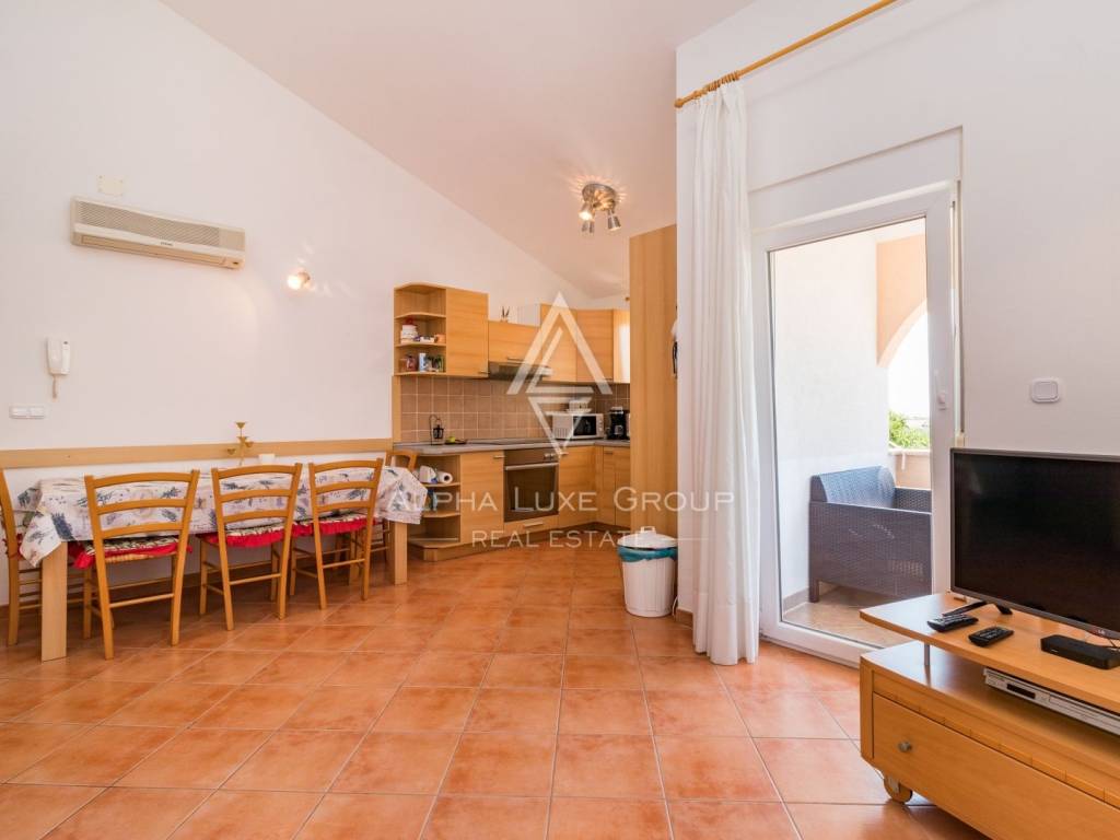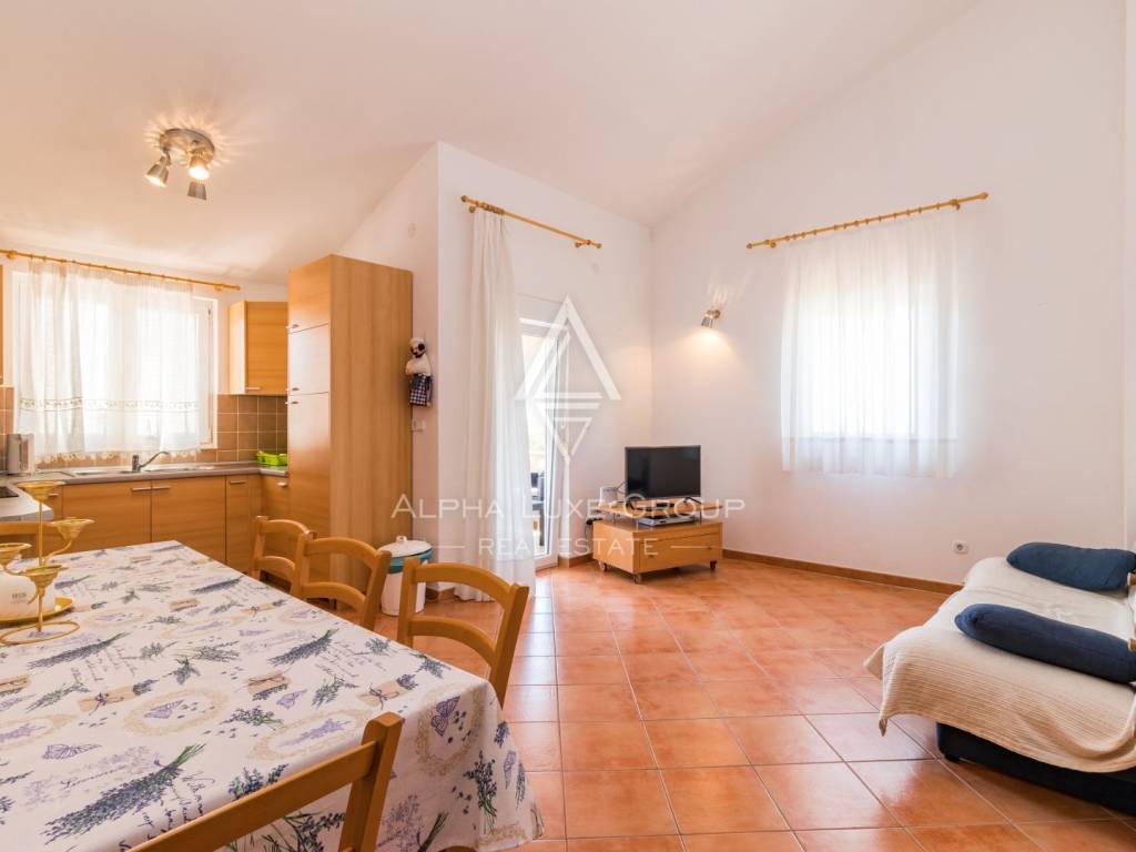 U samom središtu Vabrige, samo 800 m od prvih plaža ovog prekrasnog poluotoka nalazi se ovaj stan. Stan je dio manje, uređene zgrade u kojoj su samo dva vlasnika i tri stana. Zgrada ima podrum, prizemlje i prvi kat. Ovaj stan se nalazi na prvom katu. Sastoji se od hodnika, dnevnog dijela s kuhinjom, blagovaonom i izlazom na balkon, te dvije spavaće sobe i kupaonice. U vlasništvu stana još se nalazi natkriveno, jedno parkirno mjesto i dio dvorišta od 60 m2 iza kuće na kome su posađene masline. Idealno za sjenicu i roštilj. Zgrada je dobro održavana i oba vlasnika se dogovaraju oko svega šta je potrebno. Zaista dobra prilika za stan za život ili turistički najam.
